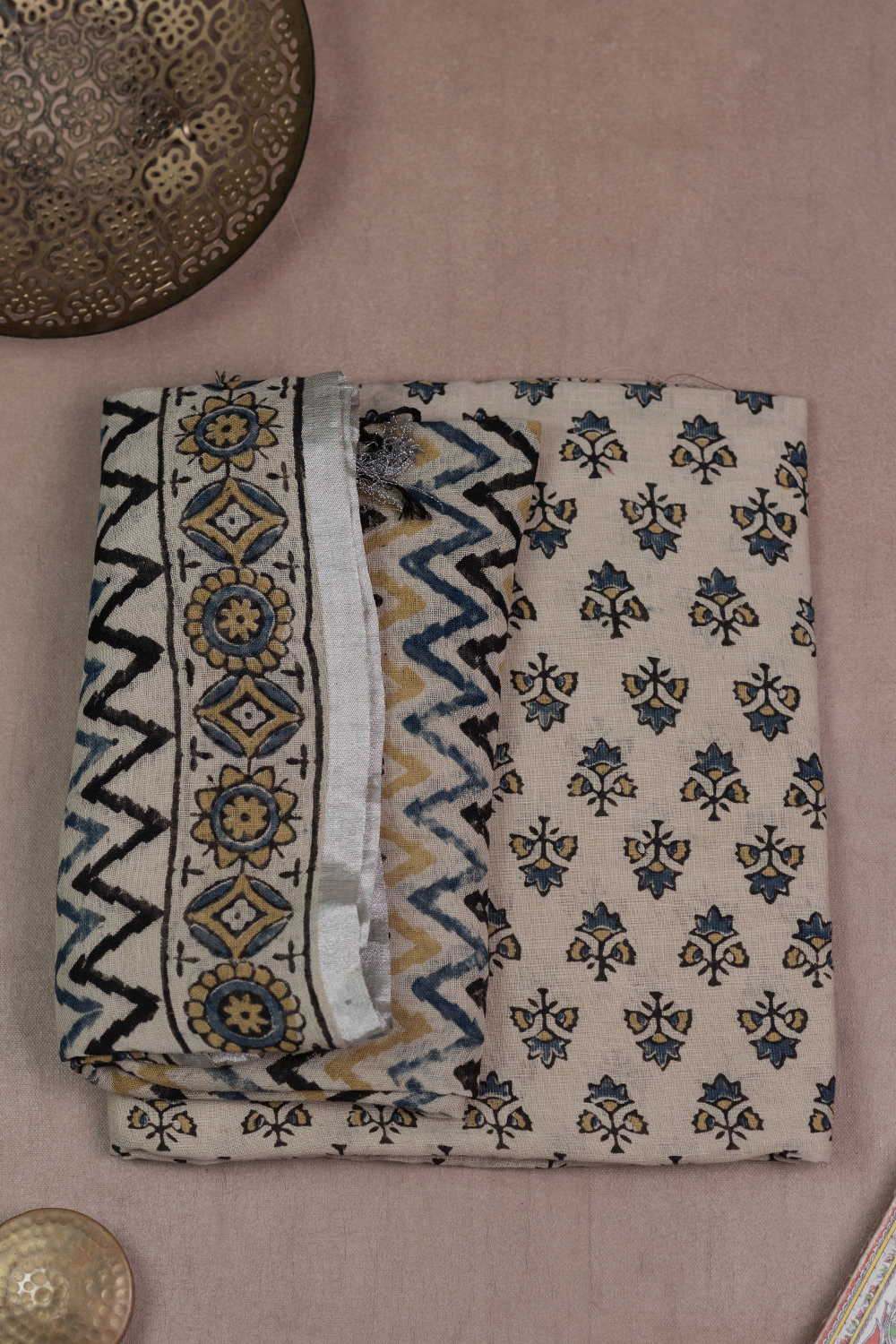 Block Printed Ajrak Linen Top & Dupatta Slightly coarse lightweight, intricately designed and comfortable to drape - ideal wear for any weather. The subtle ajrak block prints, added to the earthen colours of the fabric, make their own unique style statement.