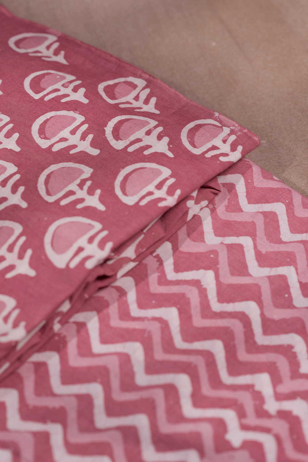 Salmon Pink Block Printed Batik Cotton Top with Bottom