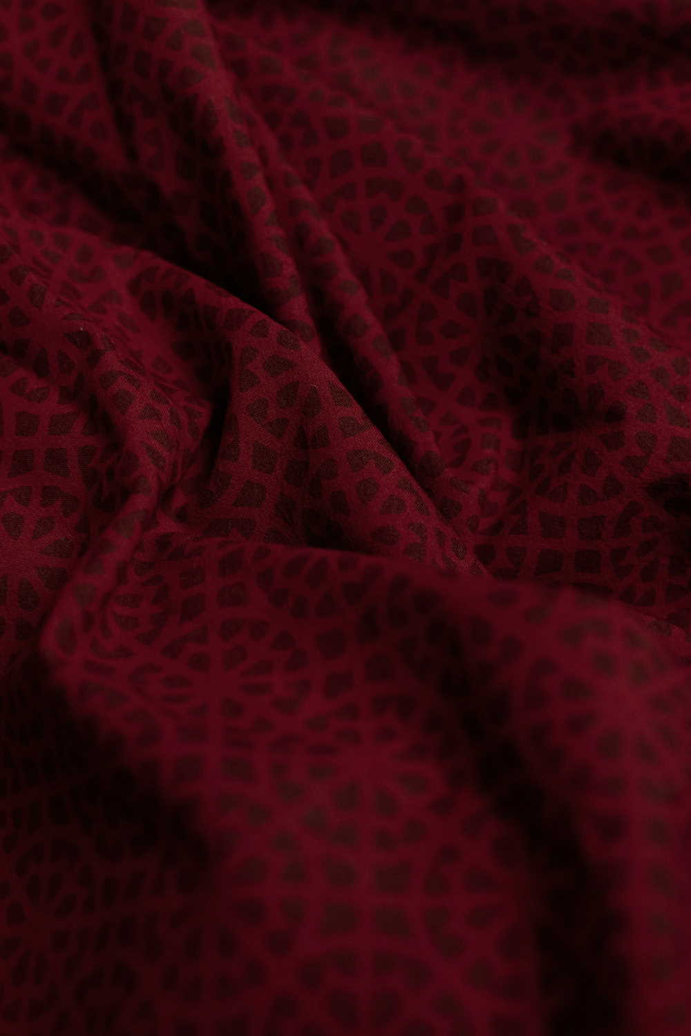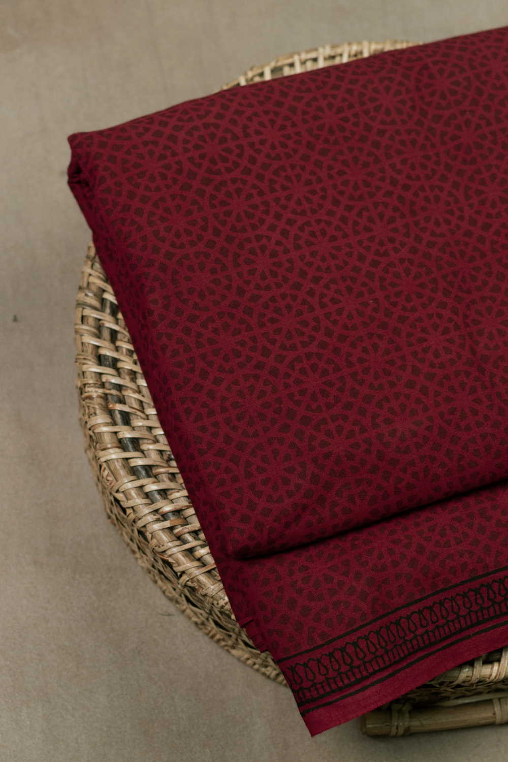 Maroon with Circle Patterns Bagh Cotton Fabric