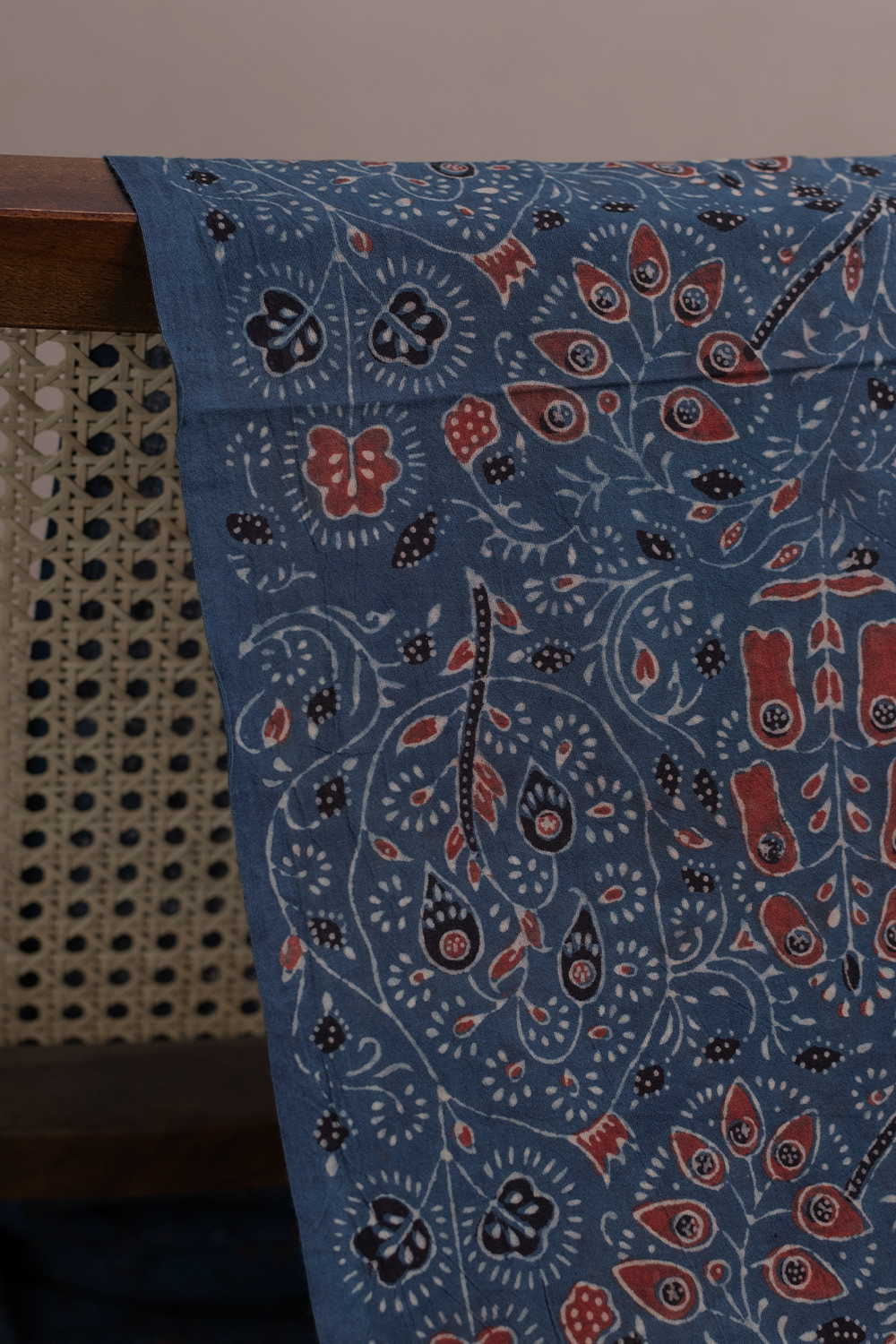 The Intricate block prints from Kutch with their Sindhi roots comes in definite geometric and floral patterns in natural shades. Ajrak is very distinct from the other styles of block printing and can be identified with the intricacy of prints and the natural tone. Soft cambric cotton fabric with Ajrak block prints - define your unique style. The Design is Parallel to the Length.