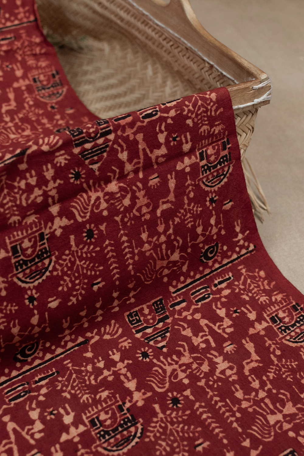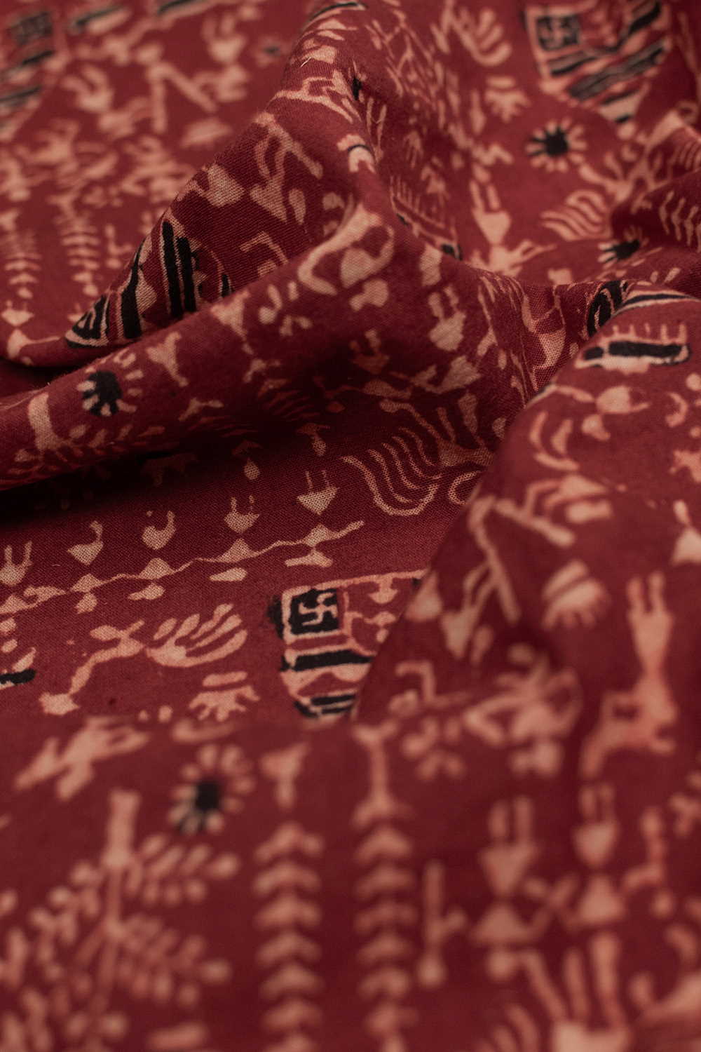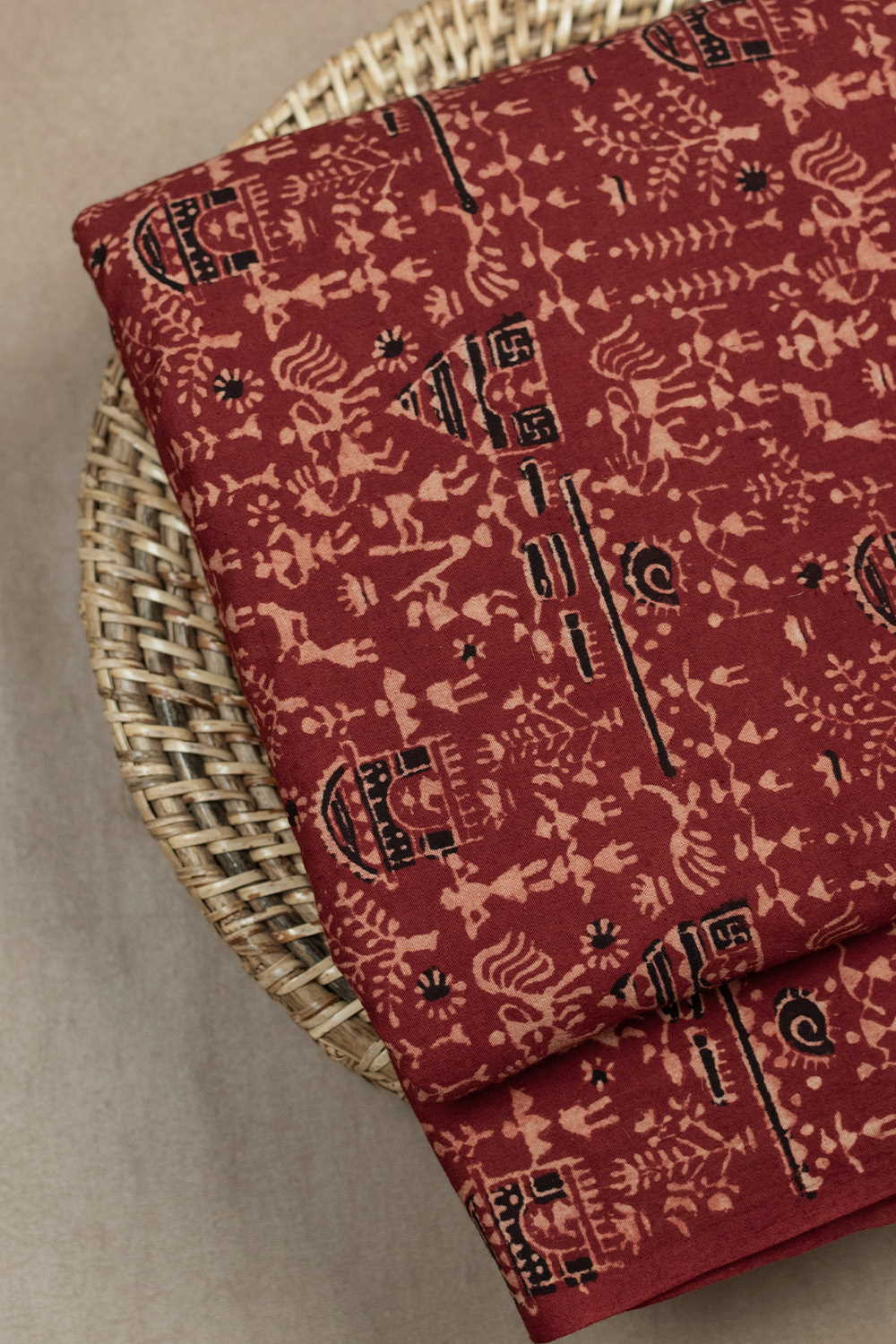 Rust Maroon Ajrak Cotton Fabric - 1.6m