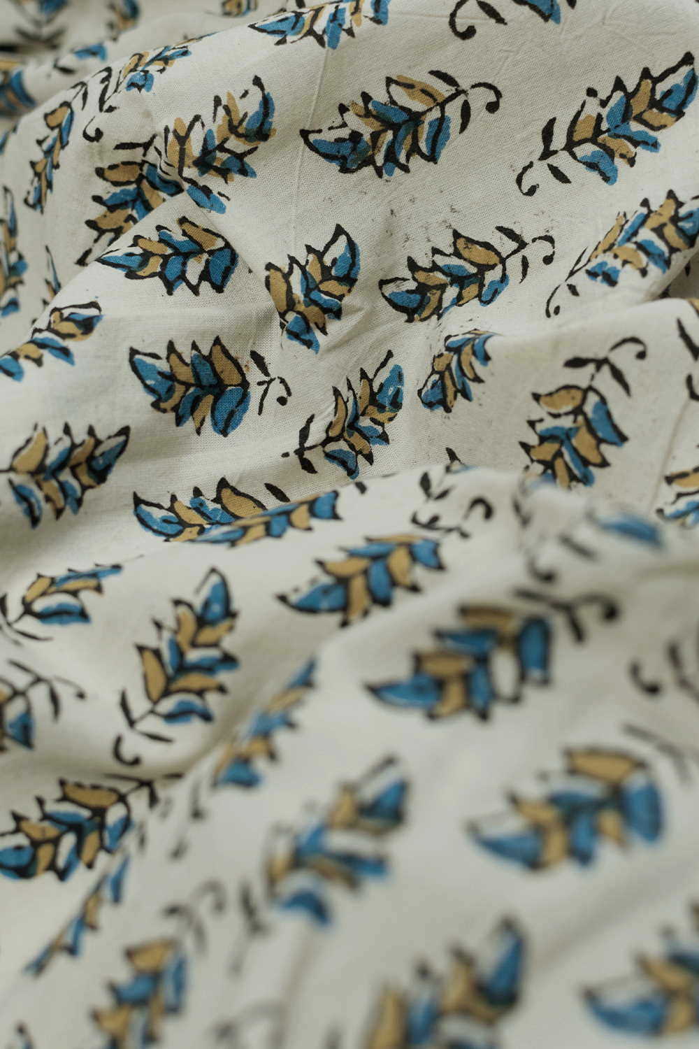 Cream - Floral Ajrak Cotton Fabric - 0.55m