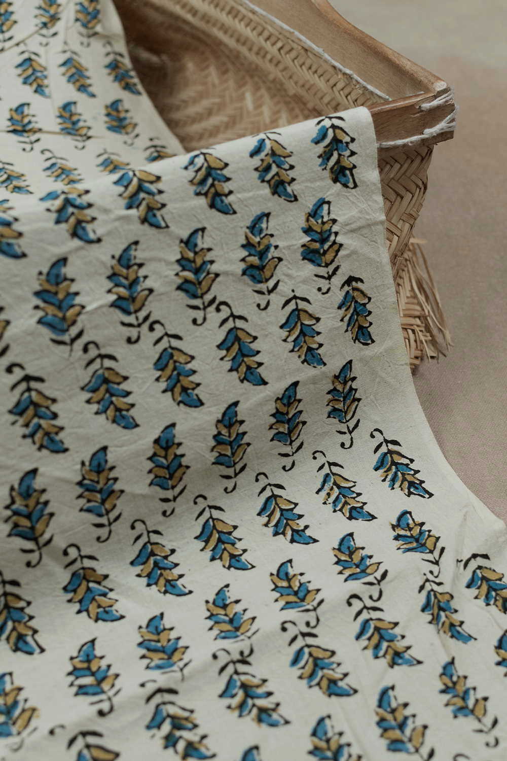 The Intricate block prints from Kutch with their Sindhi roots comes in definite geometric and floral patterns in natural shades. Ajrak is very distinct from the other styles of block printing and can be identified with the intricacy of prints and the natural tone. Soft cambric cotton fabric with Ajrak block prints - define your unique style. The Design is Parallel to the Length.