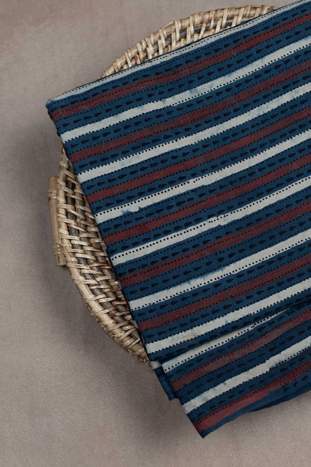 The Intricate block prints from Kutch with their Sindhi roots comes in definite geometric and floral patterns in natural shades. Ajrak is very distinct from the other styles of block printing and can be identified with the intricacy of prints and the natural tone. Soft cambric cotton fabric with Ajrak block prints - define your unique style. The Design is Parallel to the Length.