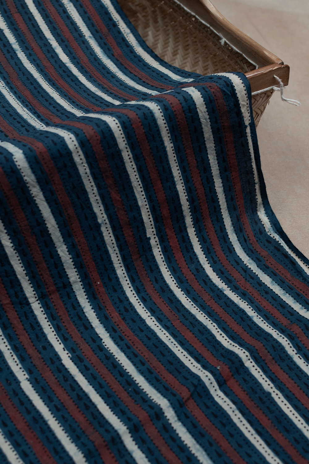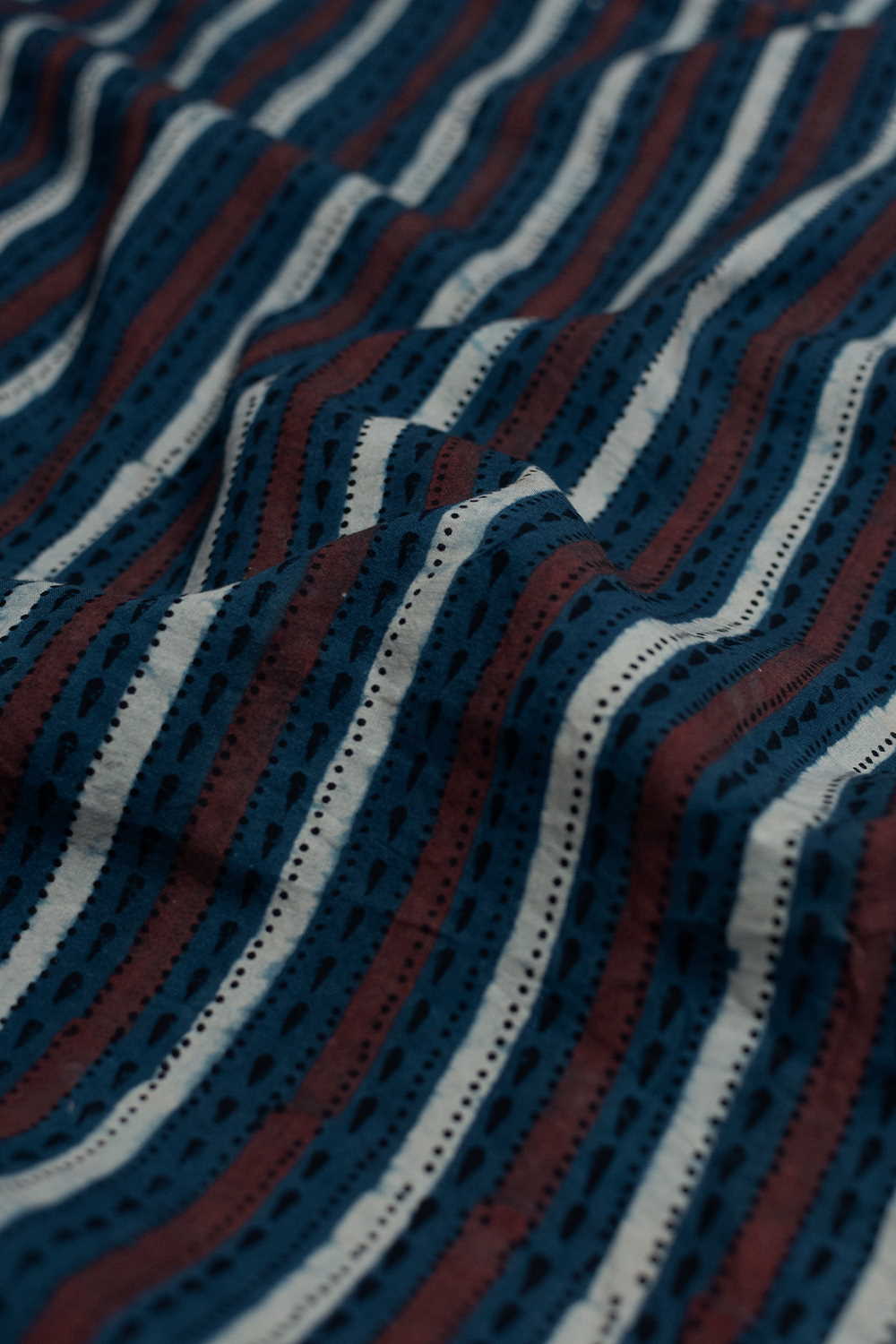 The Intricate block prints from Kutch with their Sindhi roots comes in definite geometric and floral patterns in natural shades. Ajrak is very distinct from the other styles of block printing and can be identified with the intricacy of prints and the natural tone. Soft cambric cotton fabric with Ajrak block prints - define your unique style. The Design is Parallel to the Length.
