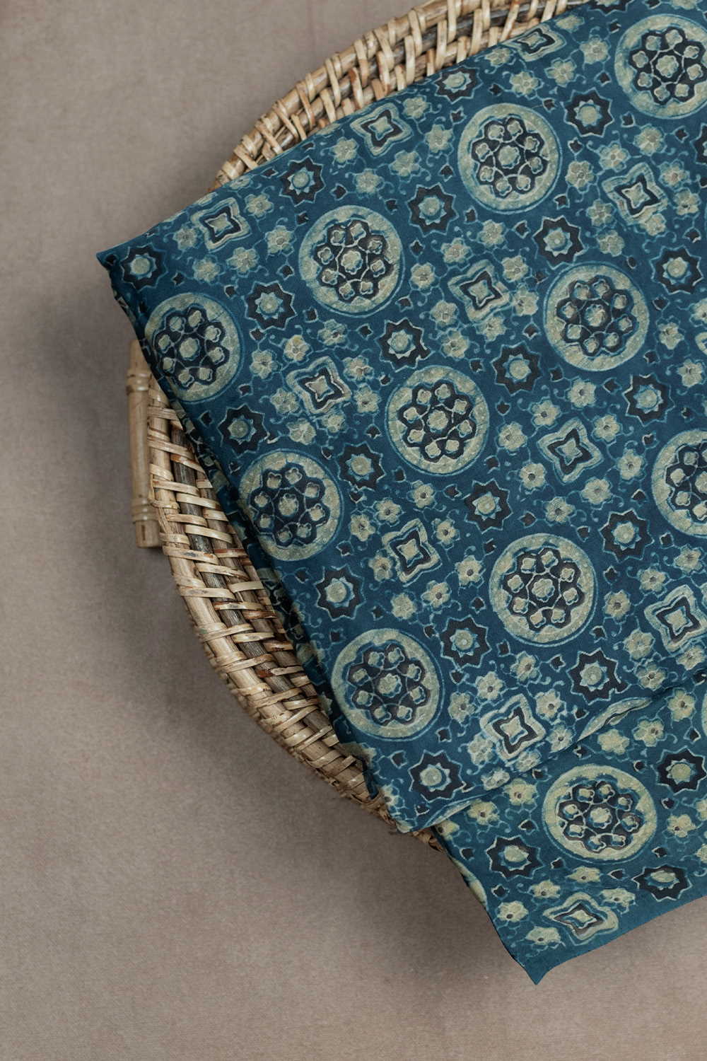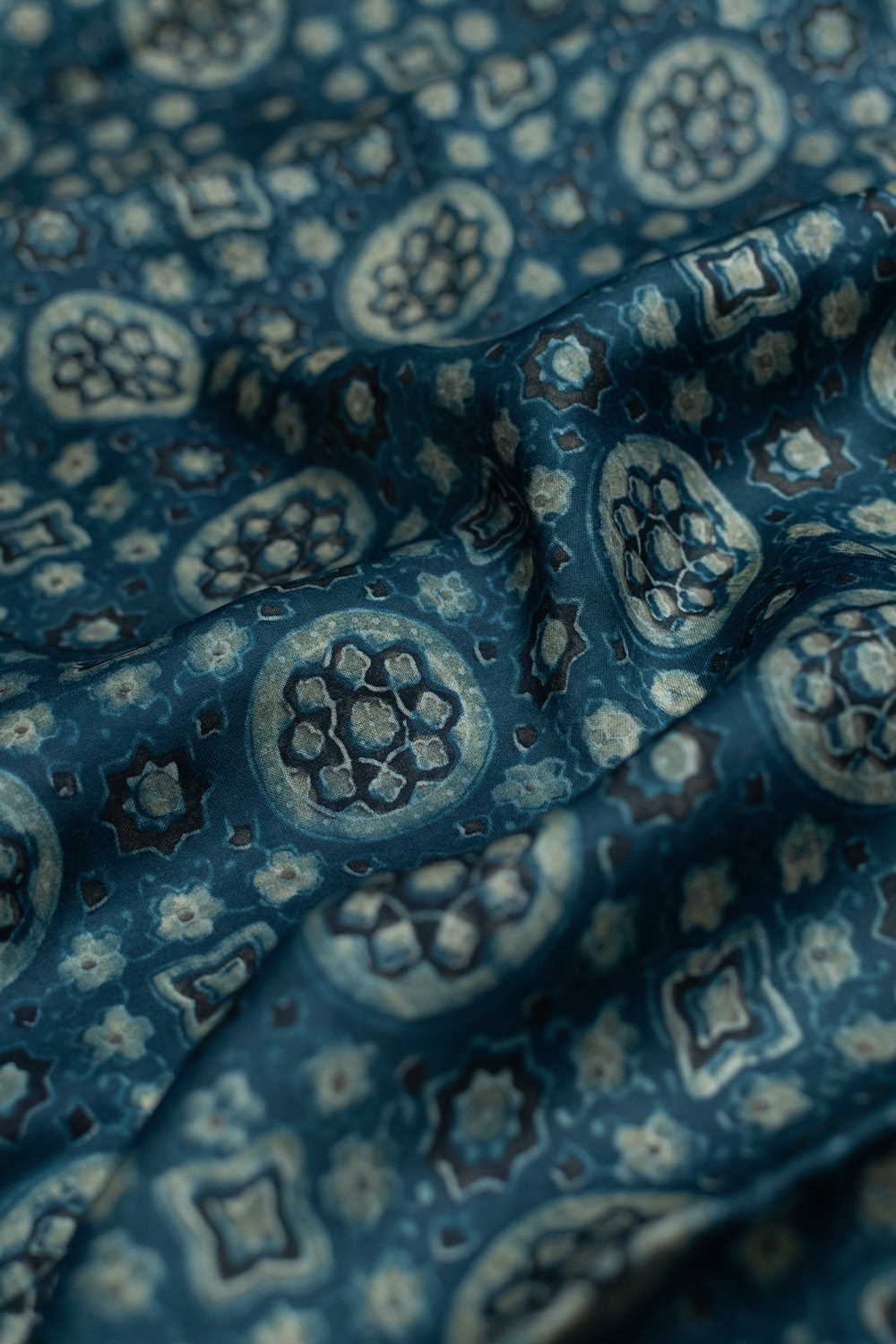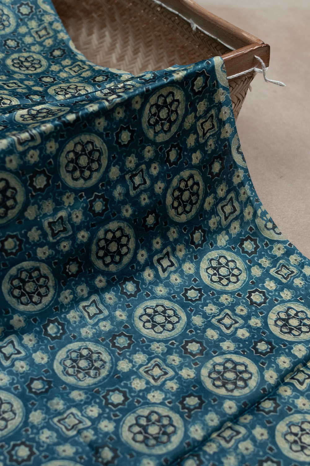 Indigo with Patterns Ajrak Modal Silk Fabric - 1.65m