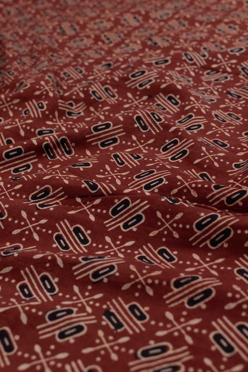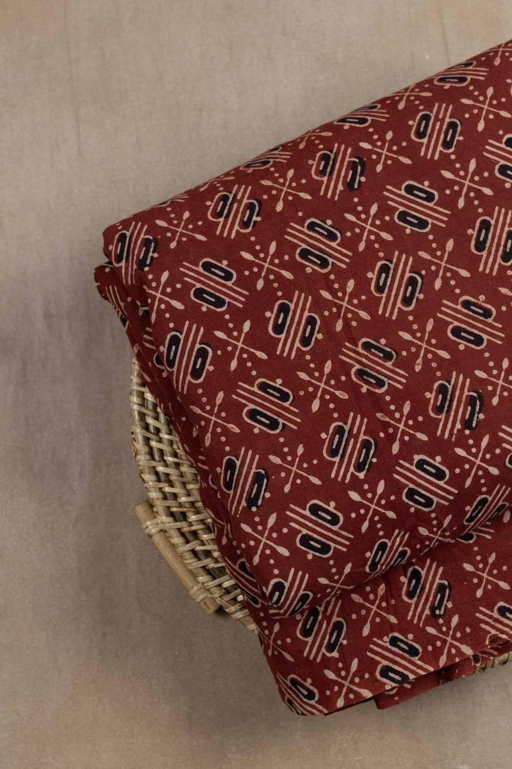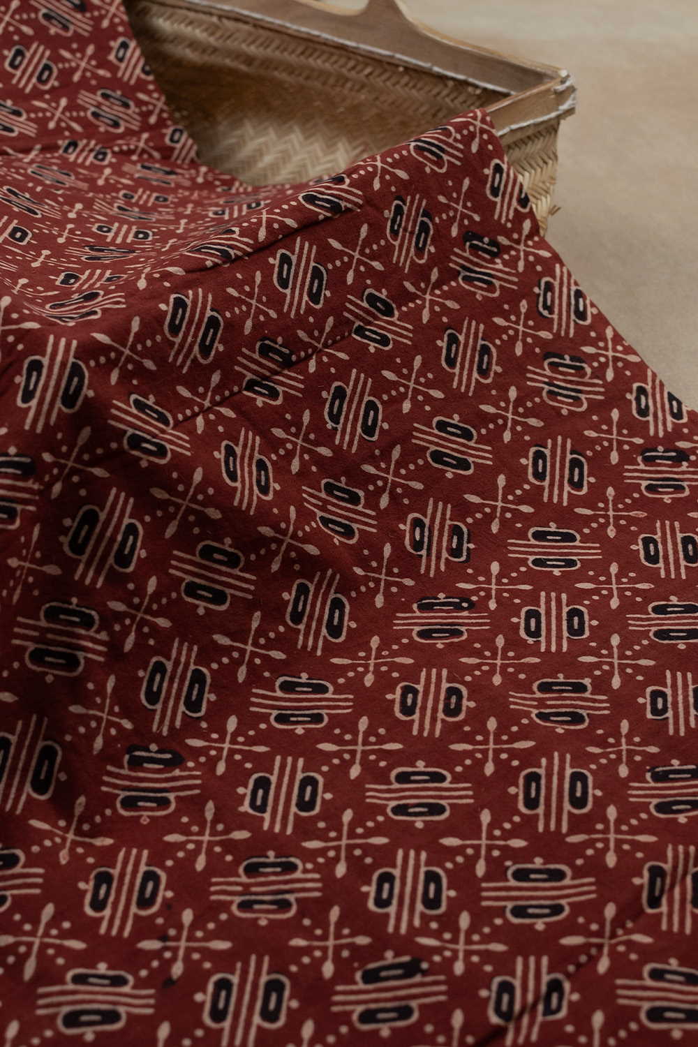 Patterned on Maroon Ajrak Cotton Fabric - 0.9m