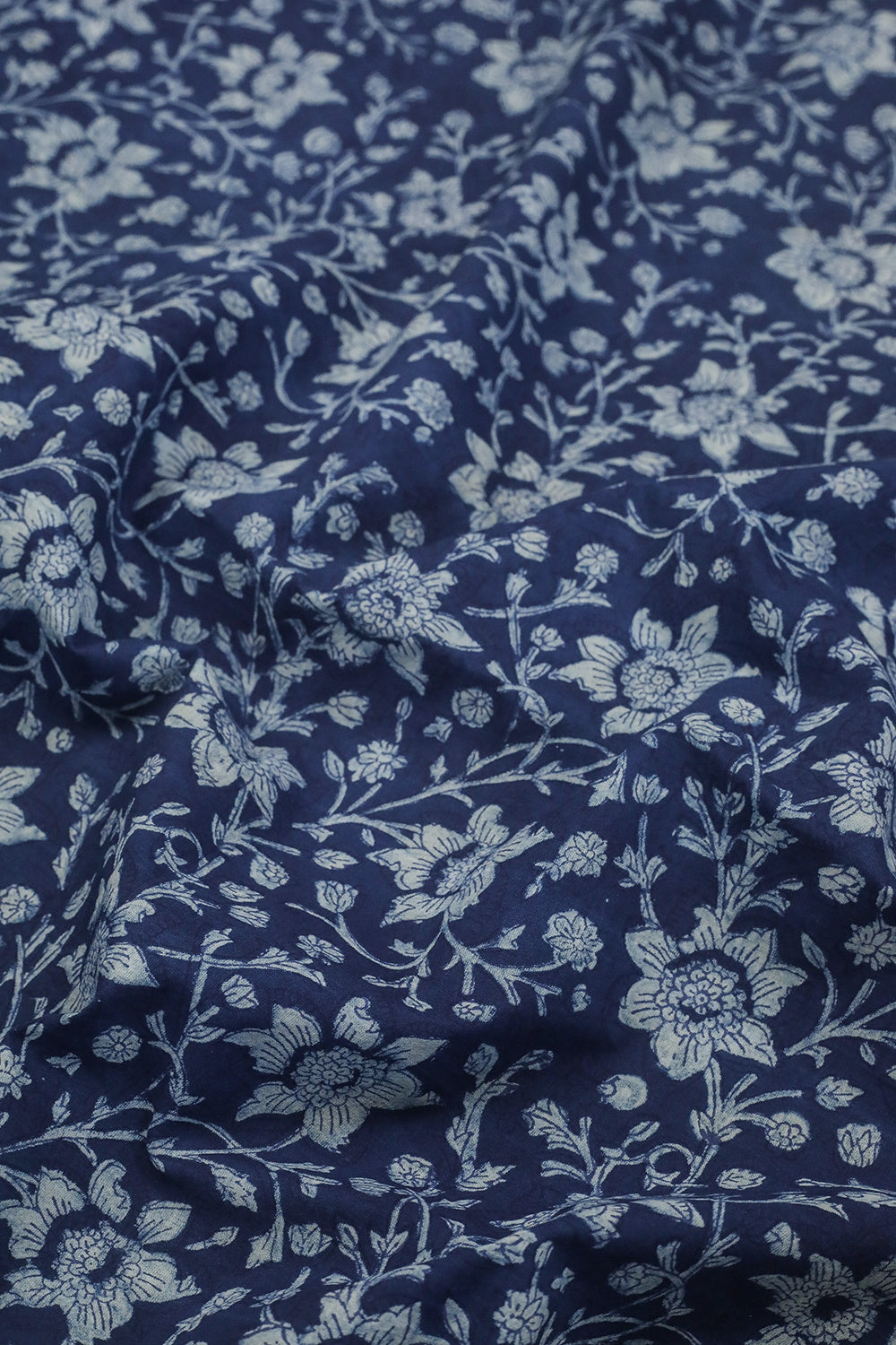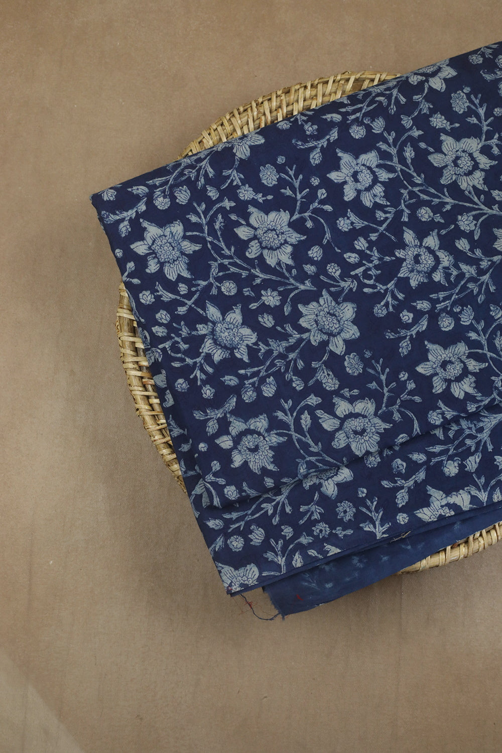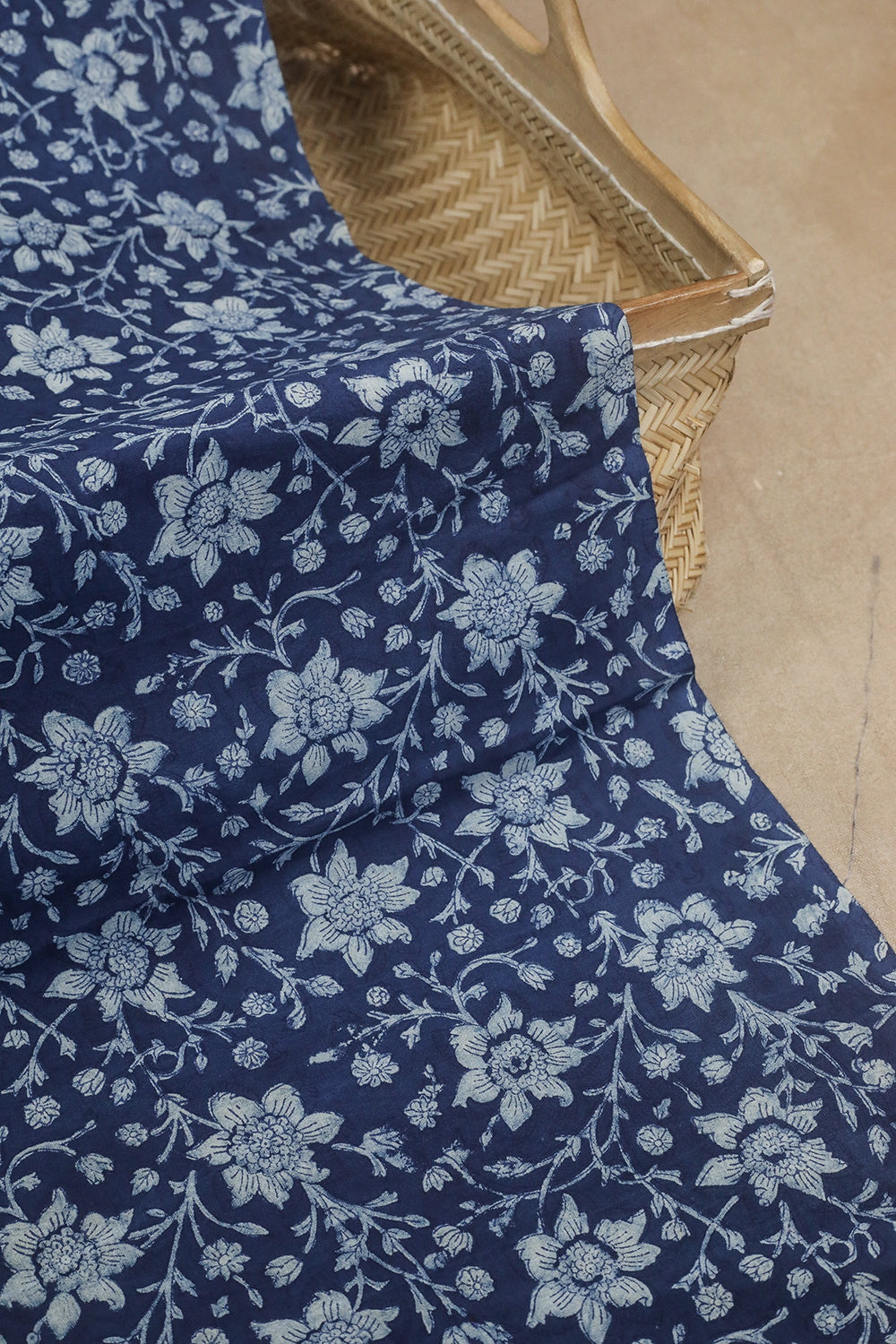 Florals on Indigo Akola Block Printed Cotton Fabric - 0.5m