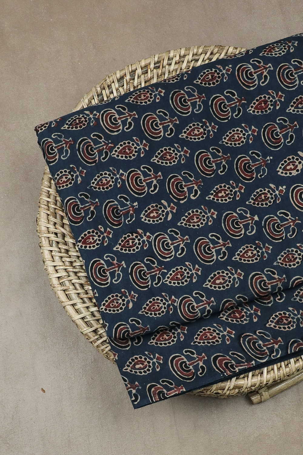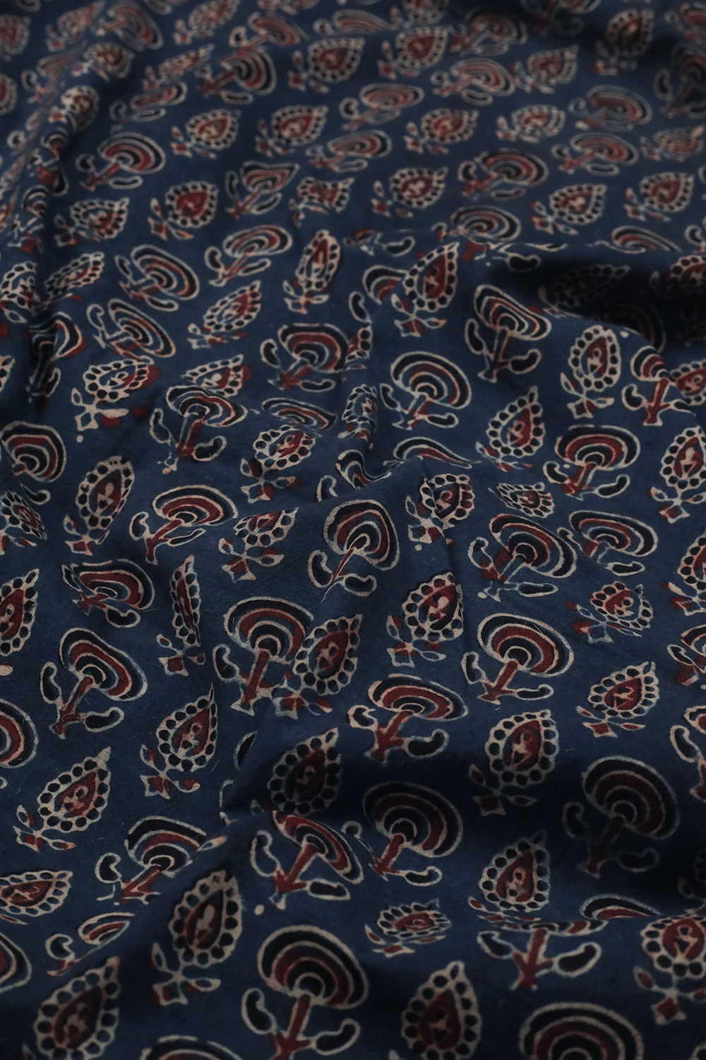 Maroon Butta on Indigo Ajrak Cotton Fabric - 1.3m
