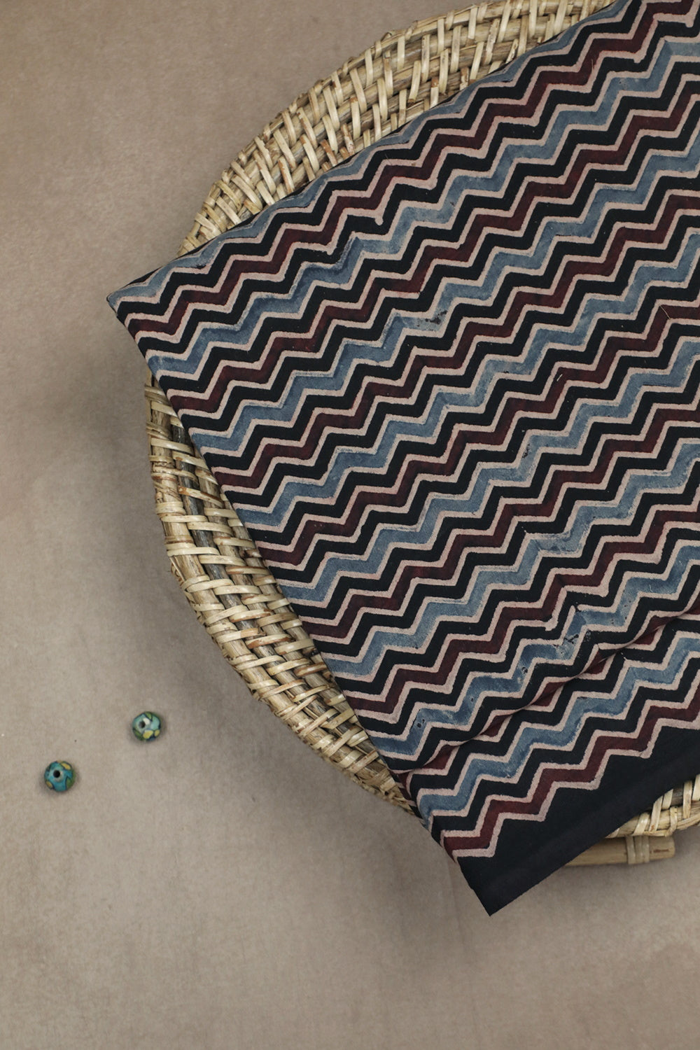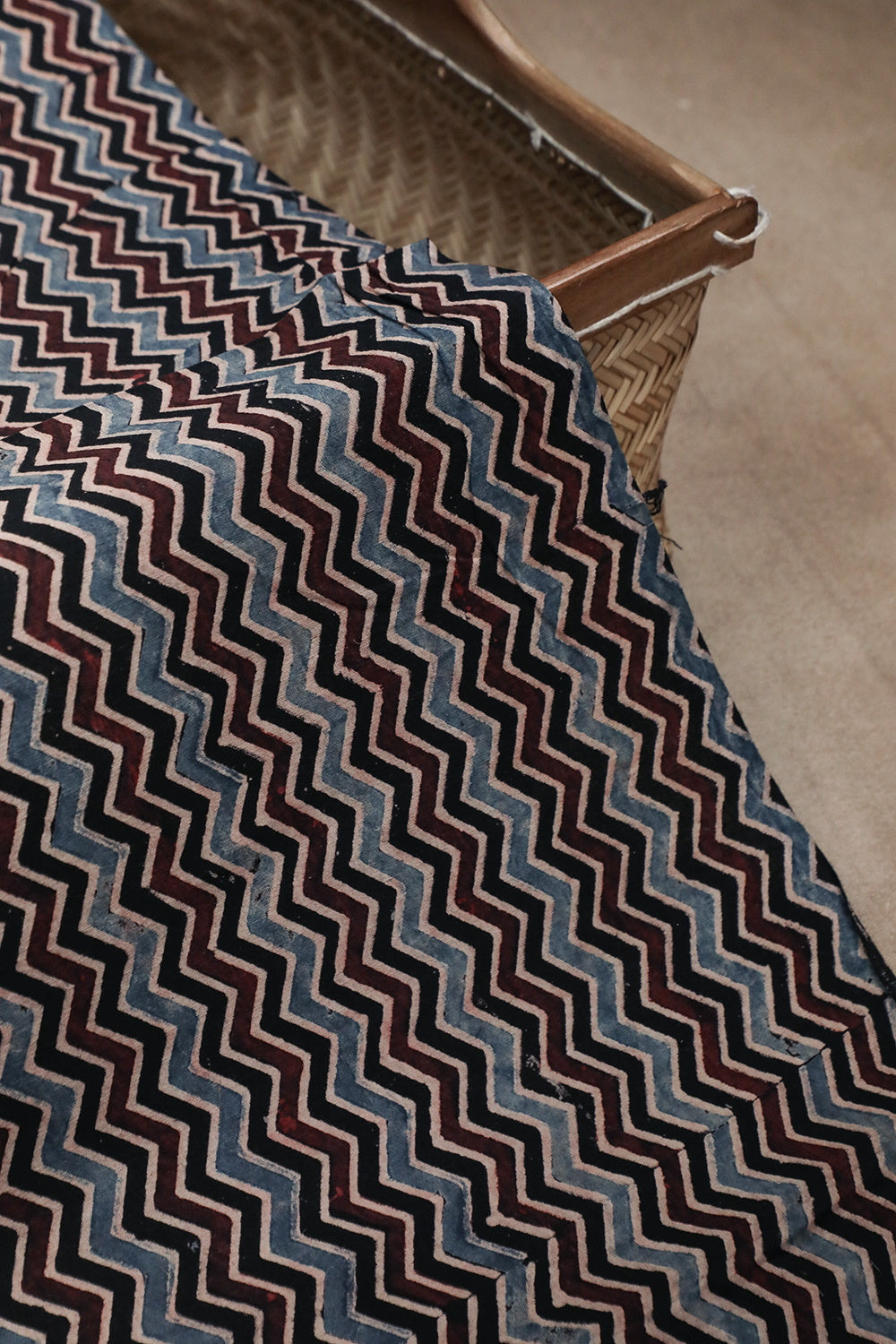 Chevrons on Black Ajrak Cotton Fabric - 0.5m