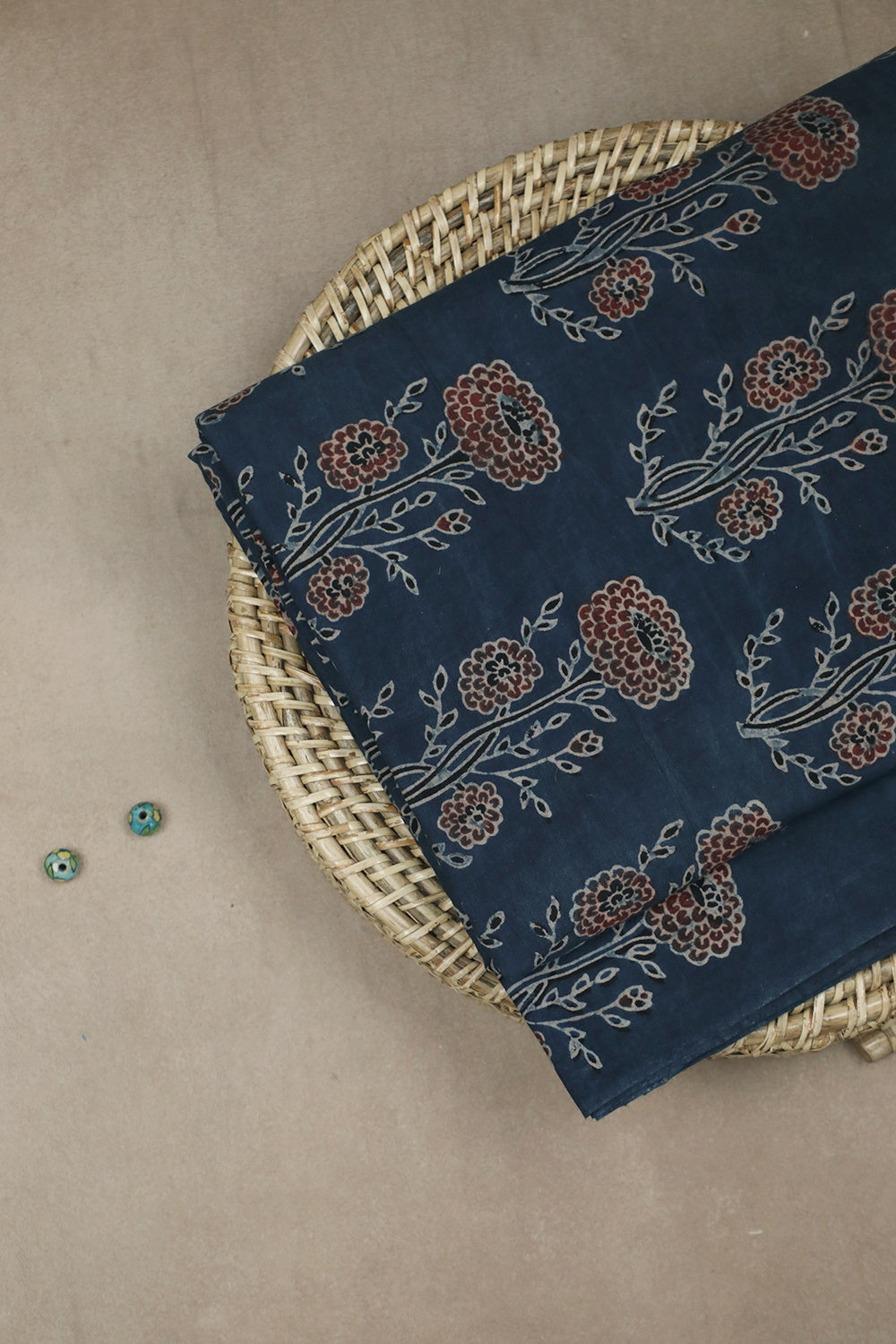 The Intricate block prints from Kutch with their Sindhi roots comes in definite geometric and floral patterns in natural shades. Ajrak is very distinct from the other styles of block printing and can be identified with the intricacy of prints and the natural tone. Soft cambric cotton fabric with Ajrak block prints - define your unique style. The Design is Parallel to the Length.