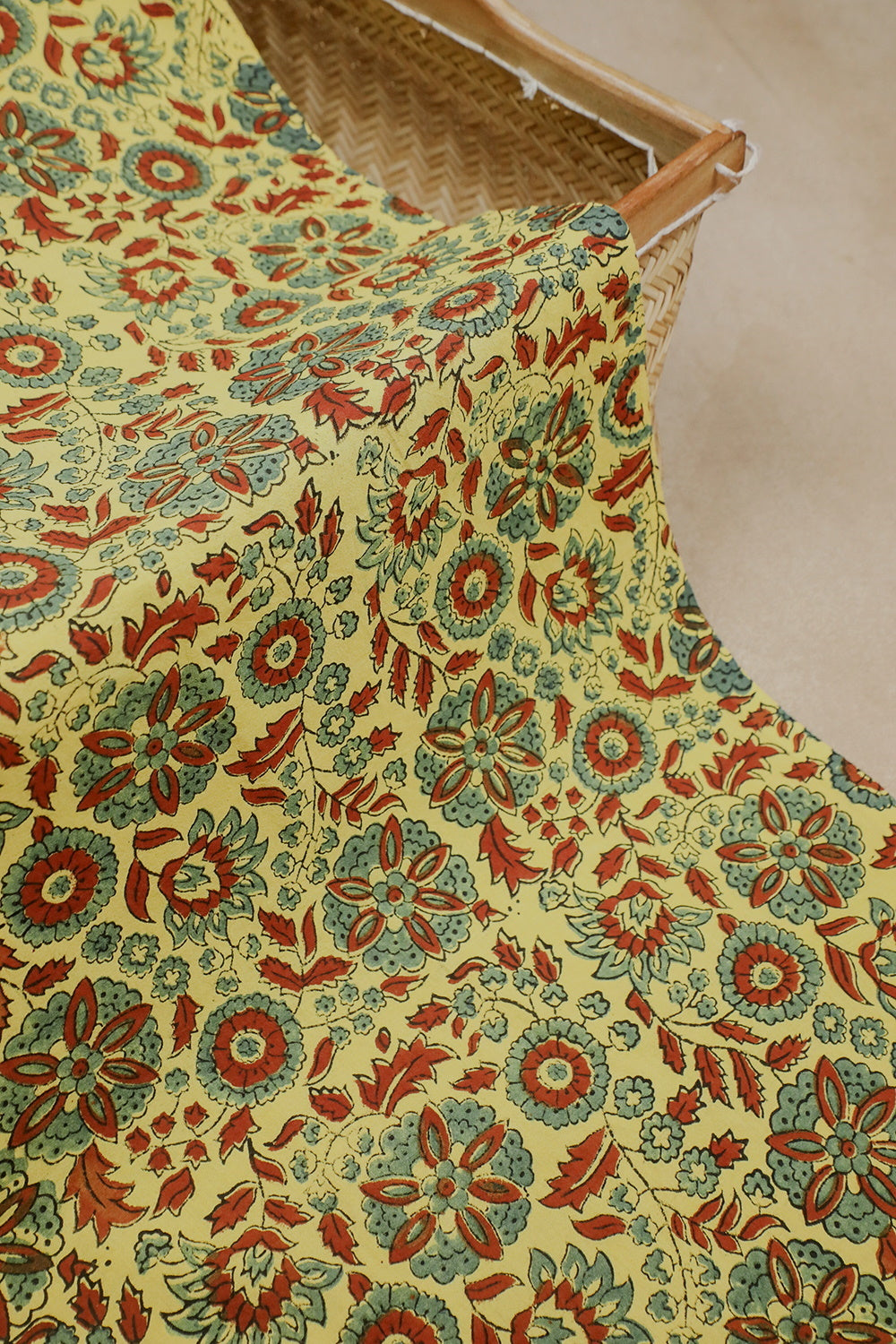 Yellow Garden Ajrak Cotton Fabric - 0.5m