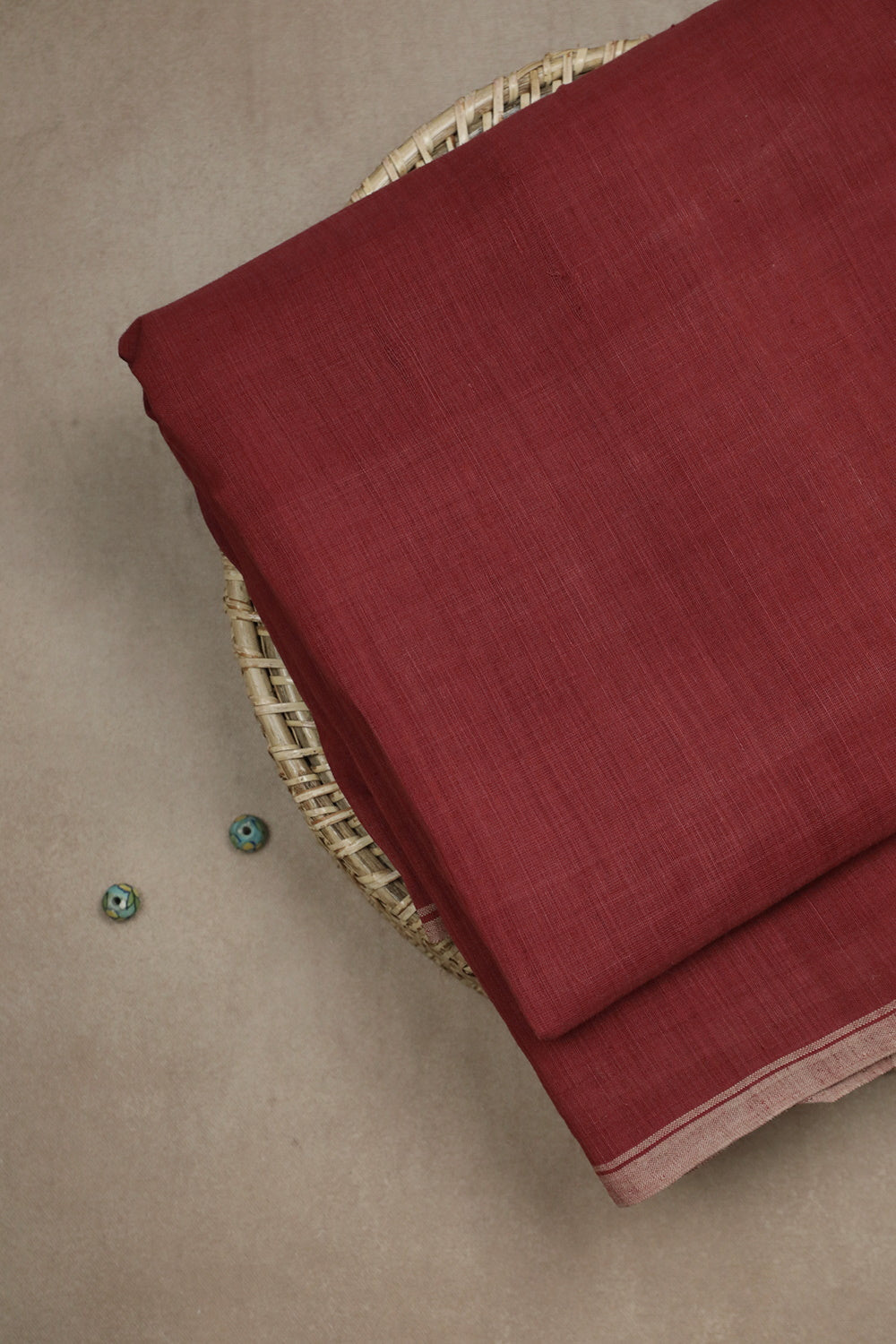 Dark Maroon Natural Dyed Handspun Handwoven Fabric - 0.65 M