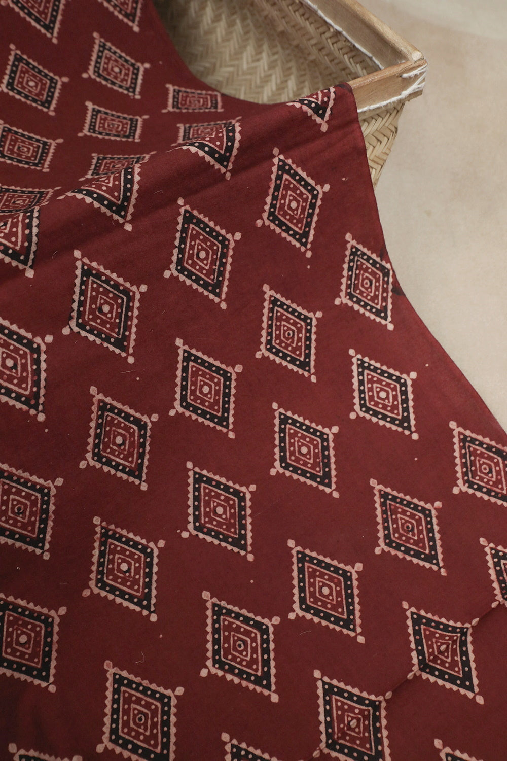 Diagonal Buttas on Maroon Ajrak Cotton Fabric - 1.7m