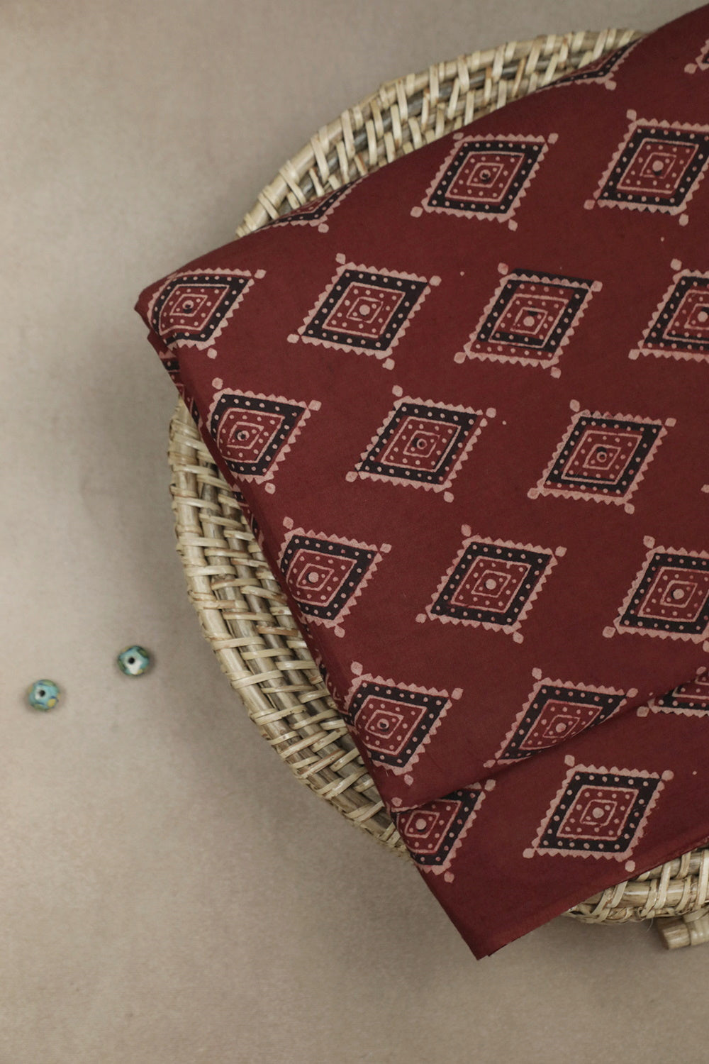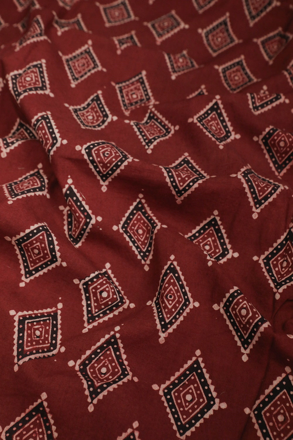 Diagonal Buttas on Maroon Ajrak Cotton Fabric - 0.7m