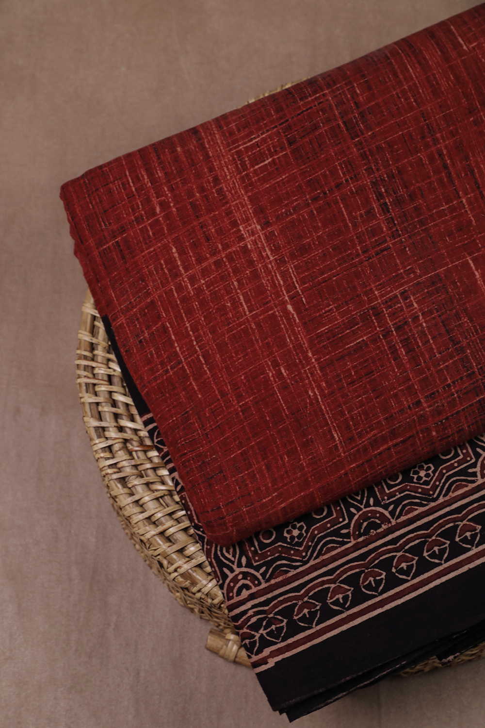 The Intricate block prints from Kutch with their Sindhi roots comes in definite geometric and floral patterns in natural shades. Ajrak is very distinct from the other styles of block printing and can be identified with the intricacy of prints and the natural tone. Soft cambric cotton fabric with Ajrak block prints - define your unique style. The Design is Parallel to the Length.