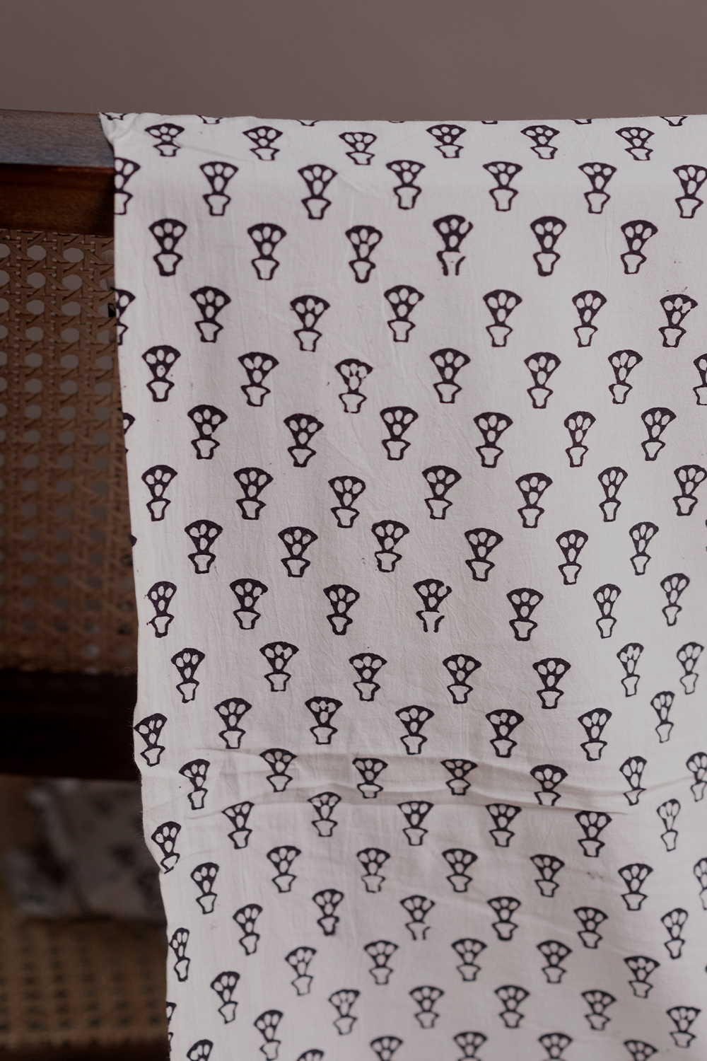The lovely Bagh Block Printed Cotton Fabrics from Madhya Pradesh tell a story together with the vines and leaves. Fine floral Motifs in soft cambric cotton makes it a simple but classy wear. The Design is parallel to Length.