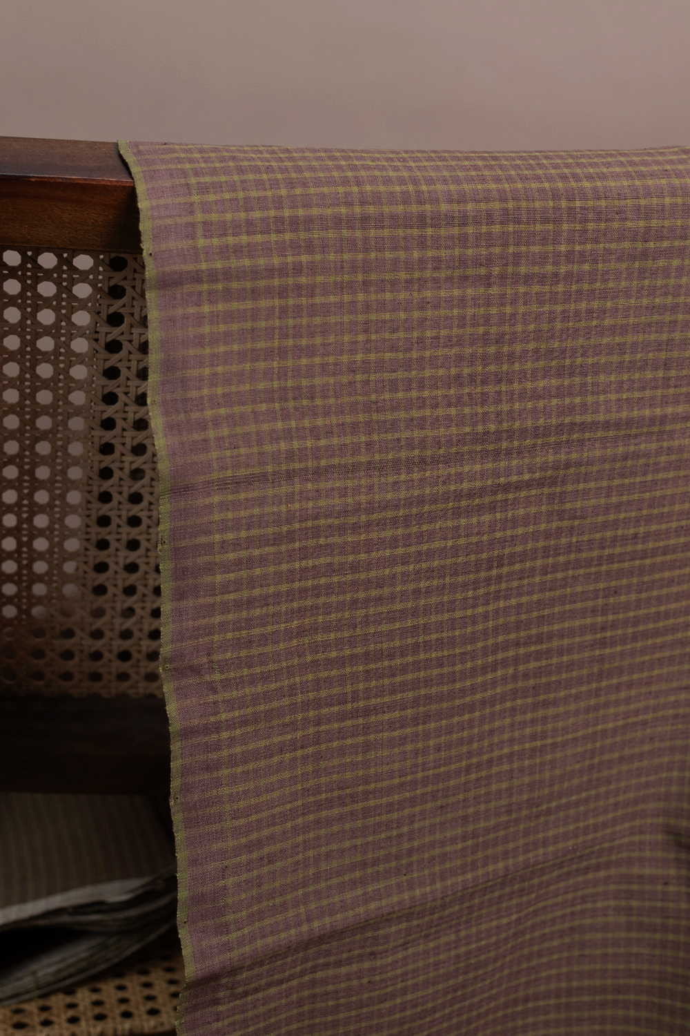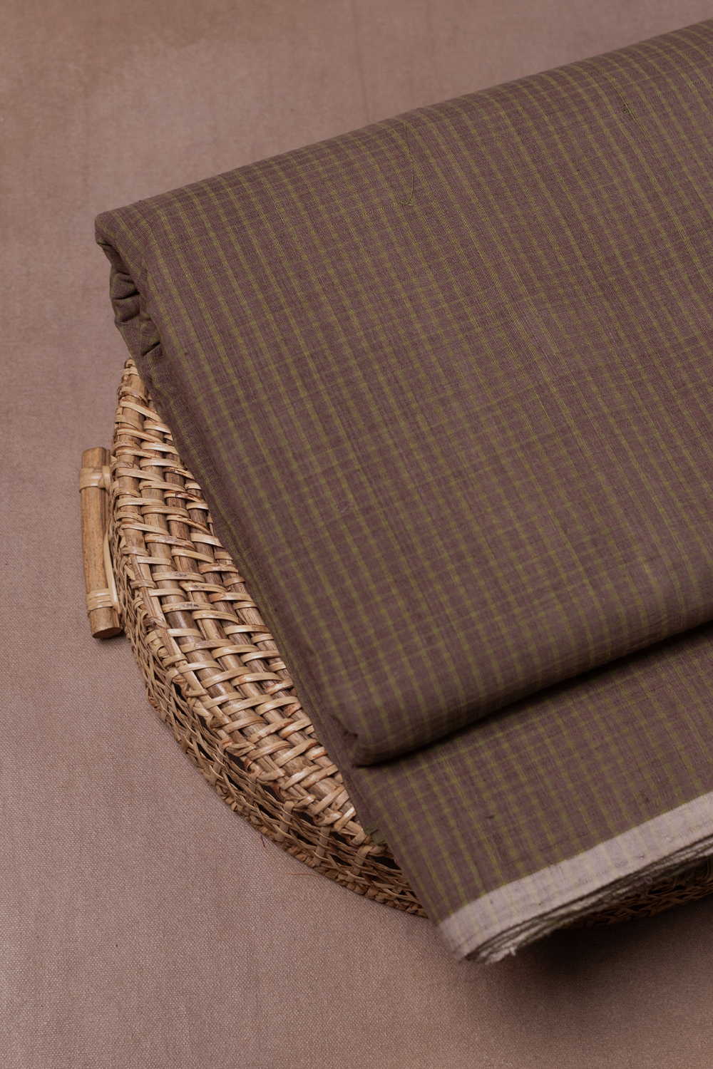 Checkered on Faded Brown Handspun Cotton Fabric - 1.5m