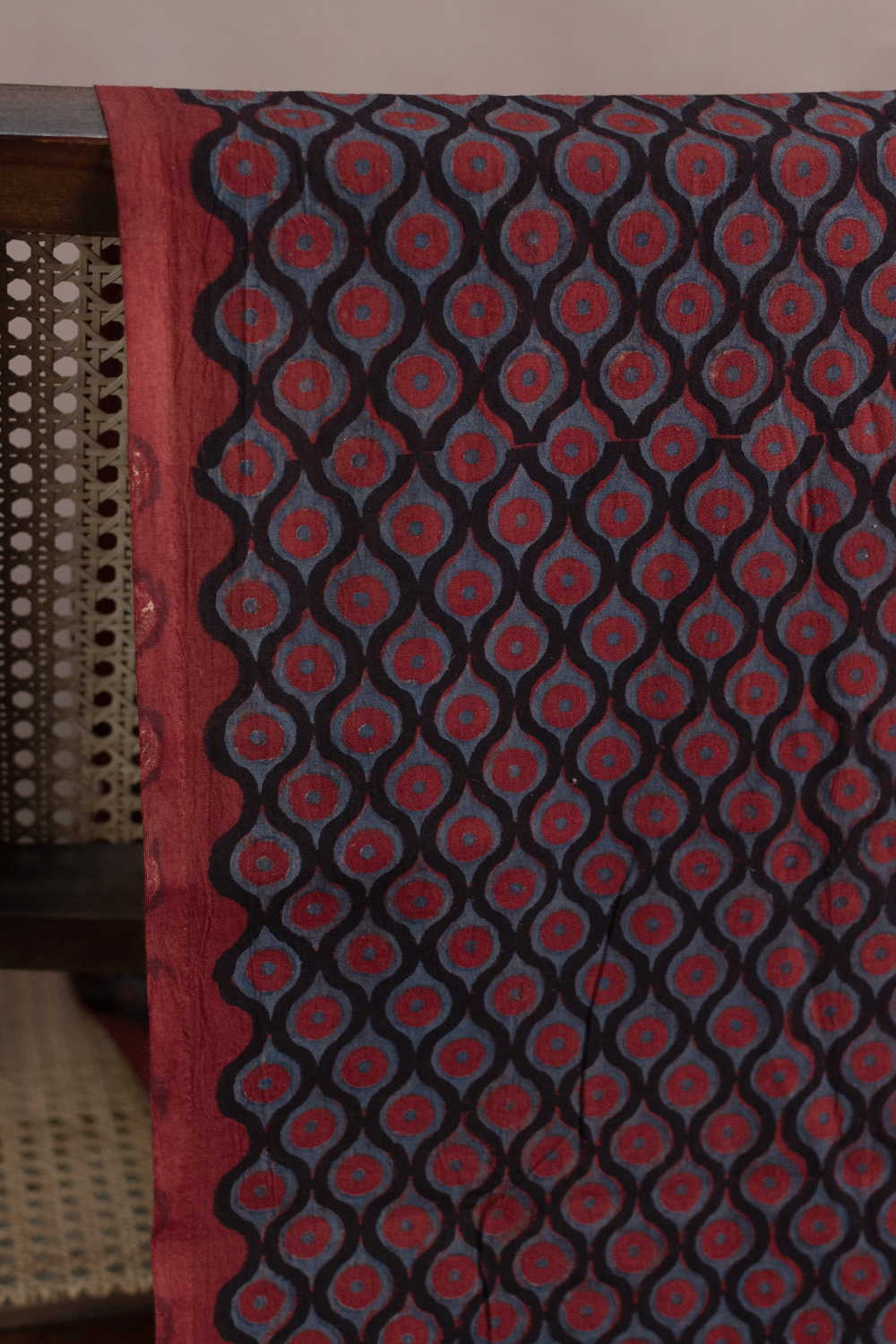 The Intricate block prints from Kutch with their Sindhi roots comes in definite geometric and floral patterns in natural shades. Ajrak is very distinct from the other styles of block printing and can be identified with the intricacy of prints and the natural tone. Soft cambric cotton fabric with Ajrak block prints - define your unique style. The Design is Parallel to the Length.