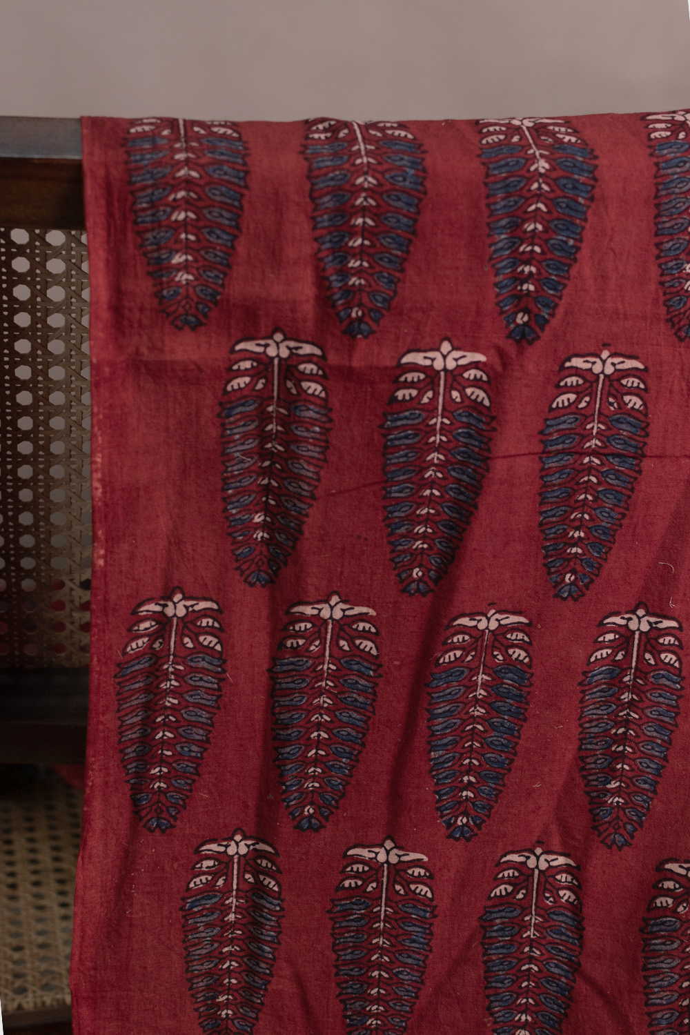 Leaf Motifs - Maroon Ajrak Cotton Fabric