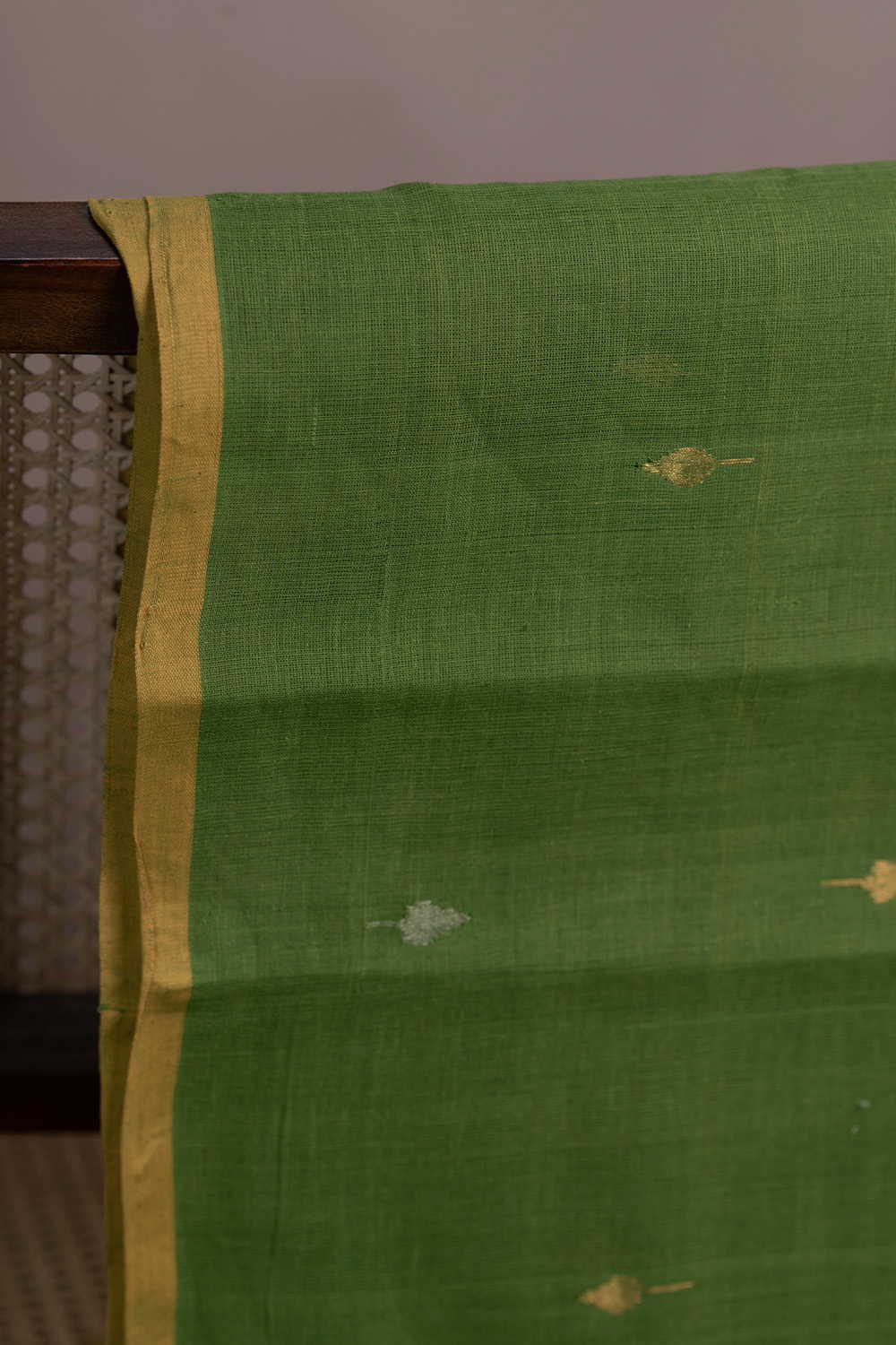 Zari Buttas on Leaf Green Handspun Cotton Fabric