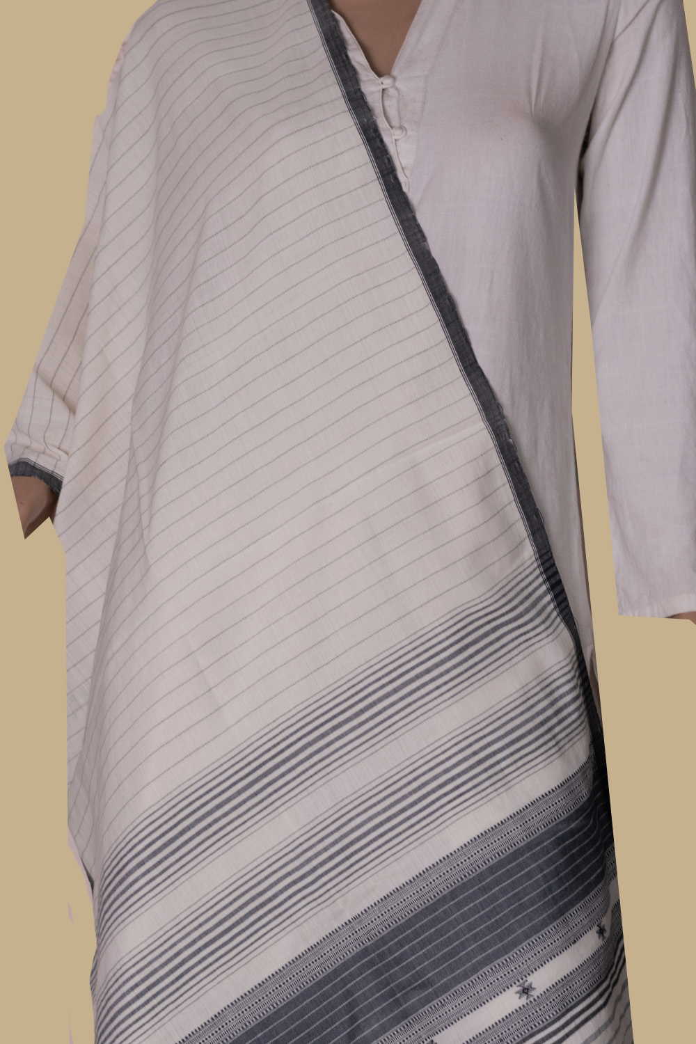 Black Stripe on Cream Bhujodi Cotton Dupatta