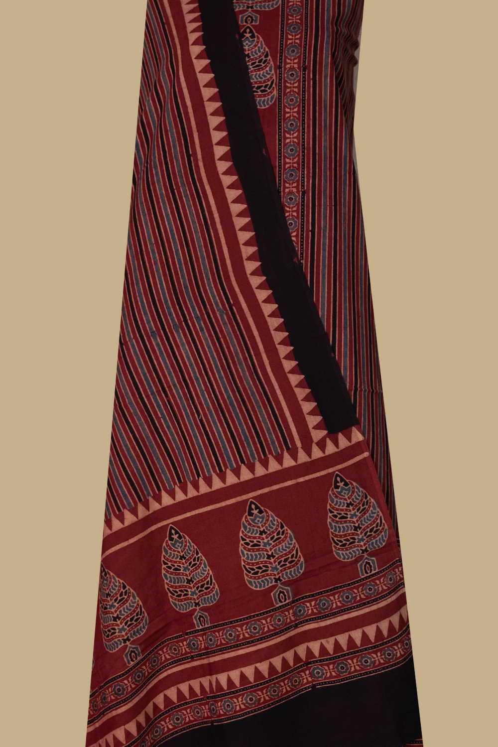 Block Printed Ajrak Suits, soft to touch, intricately designed and comfortable to drape - ideal wear for any weather. The zesty block prints, added to the vibrant colours of the fabric, make their own unique style statement. This dress material will not require lining.