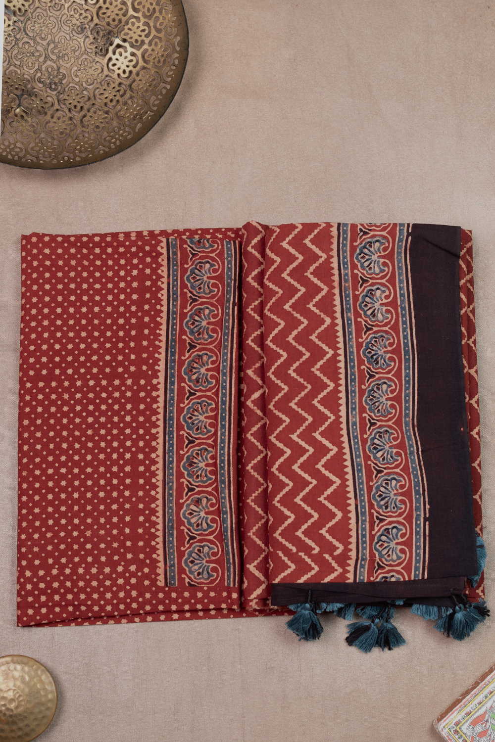 Block Printed Ajrak Suits, soft to touch, intricately designed and comfortable to drape - ideal wear for any weather. The zesty block prints, added to the vibrant colours of the fabric, make their own unique style statement. This dress material will not require lining.