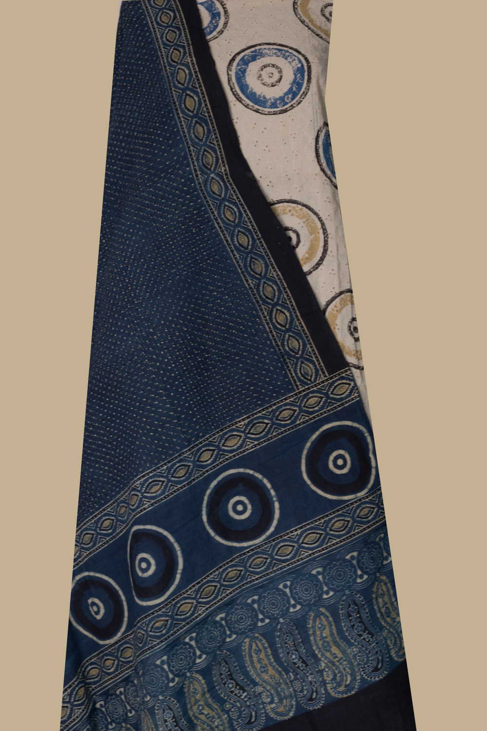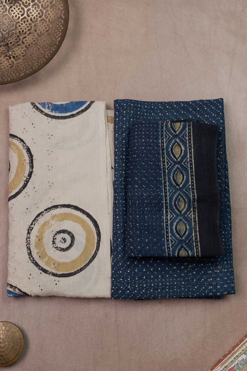 Cream with Circle Hakoba Ajrak Cotton Suit