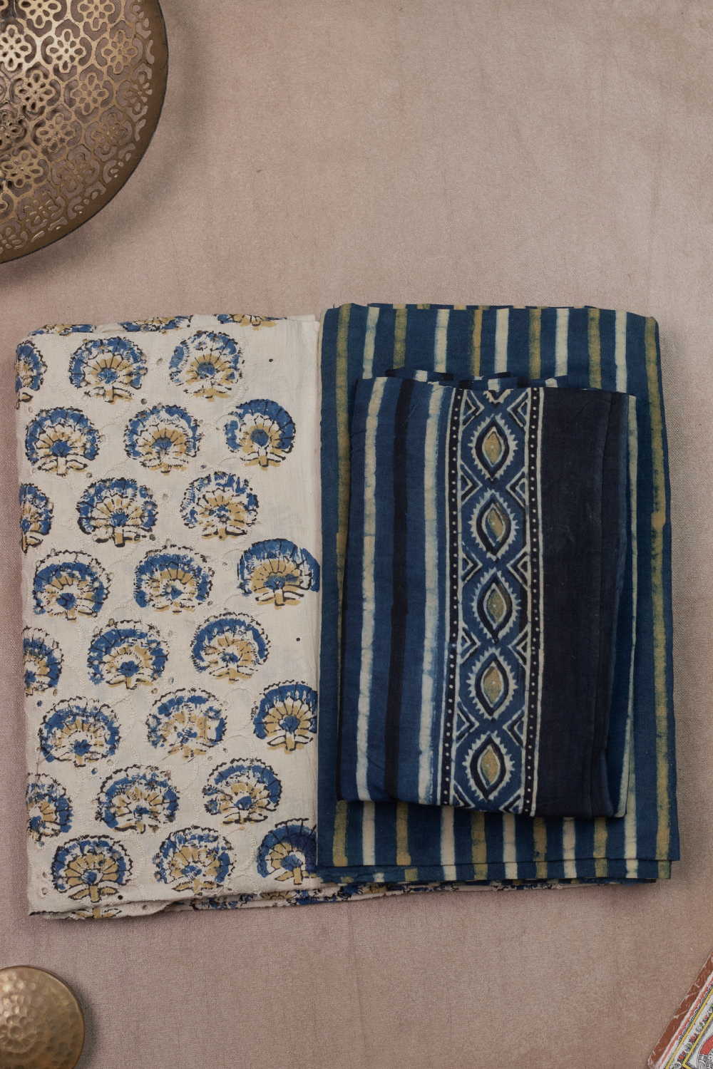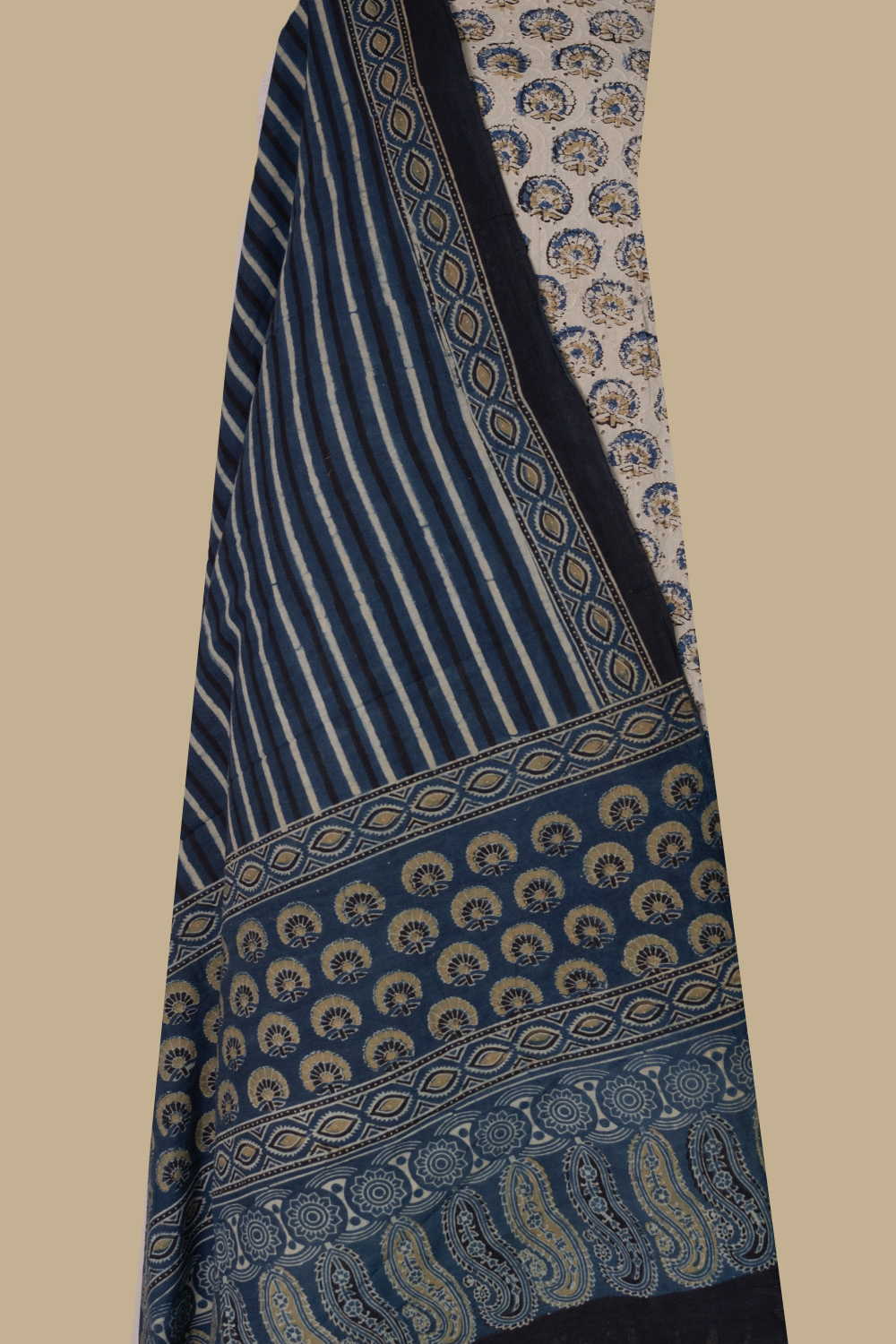 Ivory Cream Ajrak Hakoba Cotton Suit