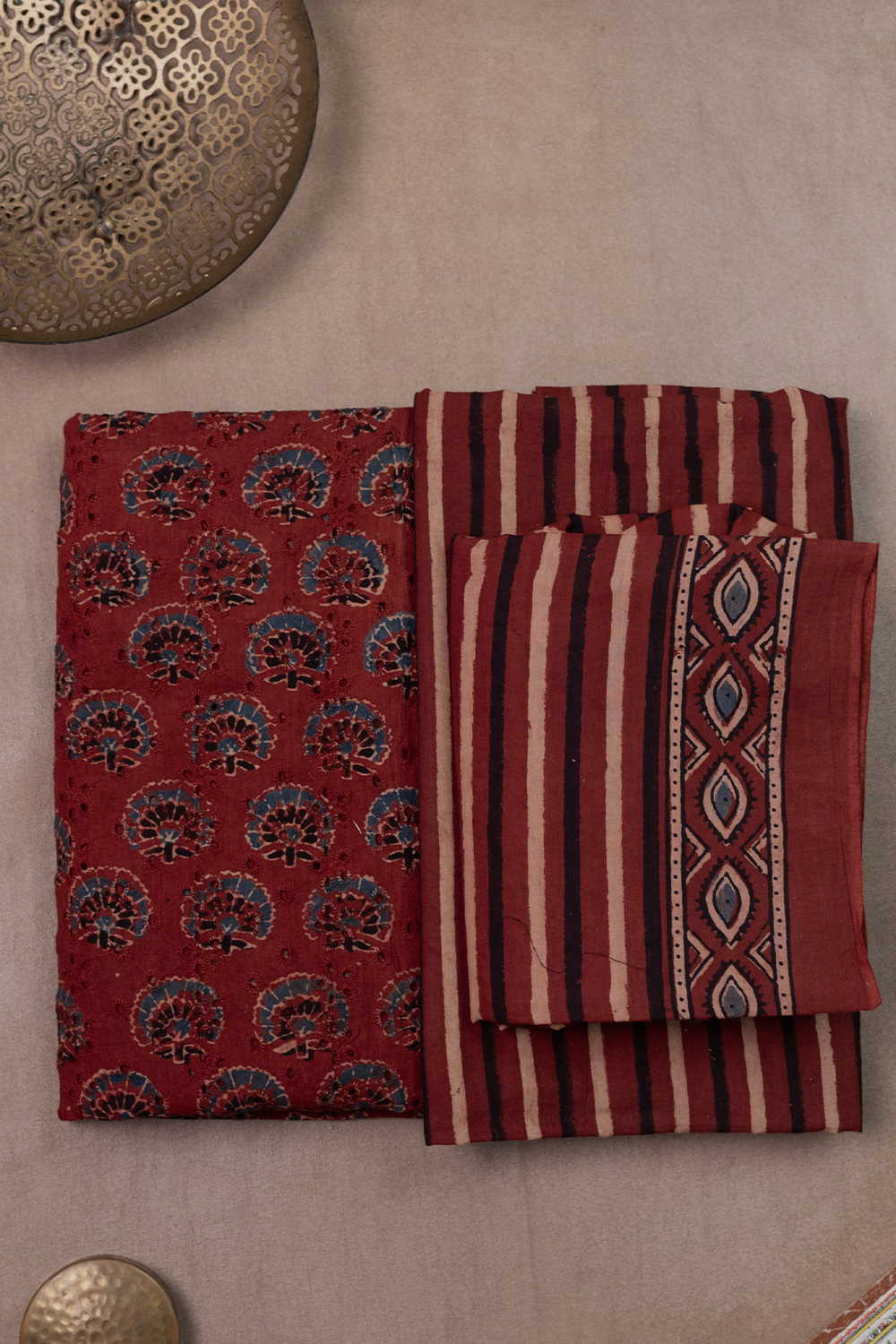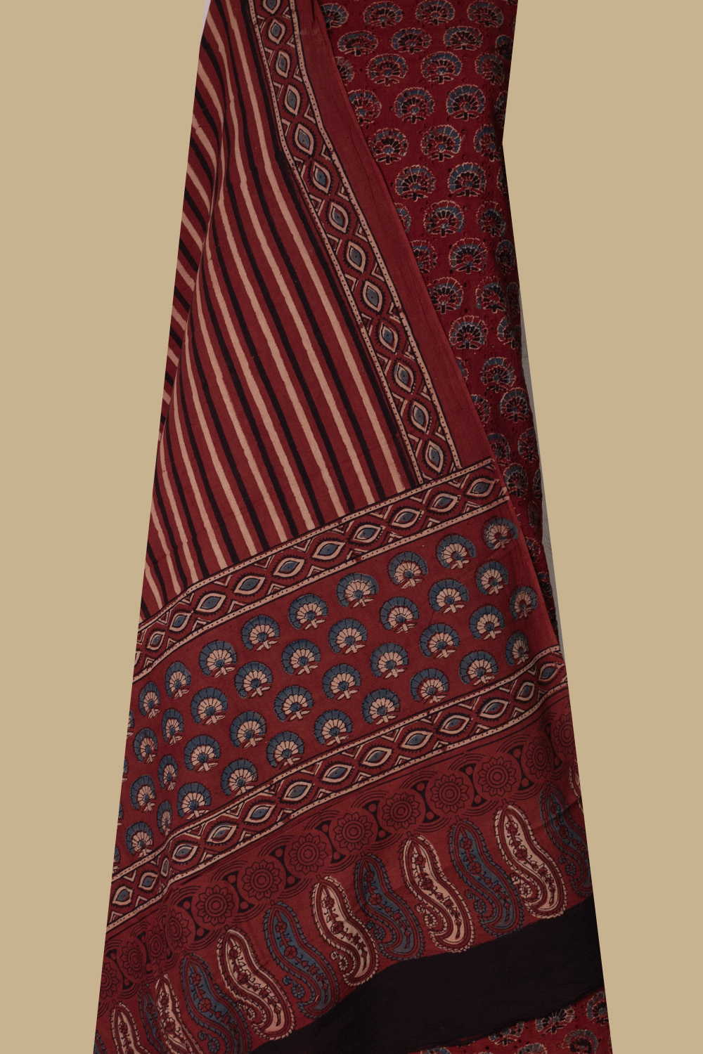 Floral Butta on Maroon Ajrak Hakoba Cotton Suit