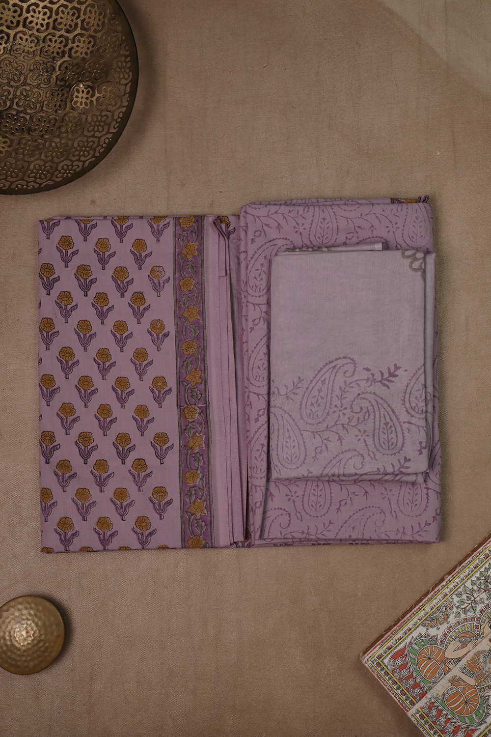 Soft Purple Block Printed Mul Cotton Suit
