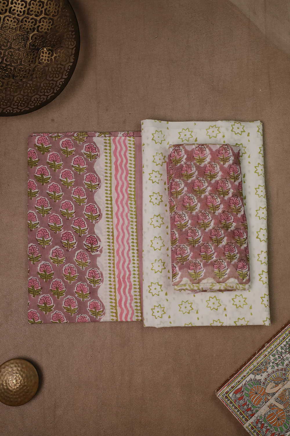 Bottom: Block Printed Cotton: 2.3-2.4 meter approx, 44 inches