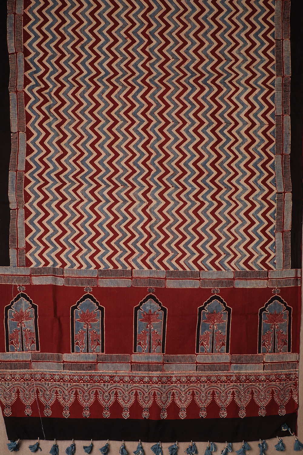 Chevron - Maroon Ajrak Cotton Dupatta