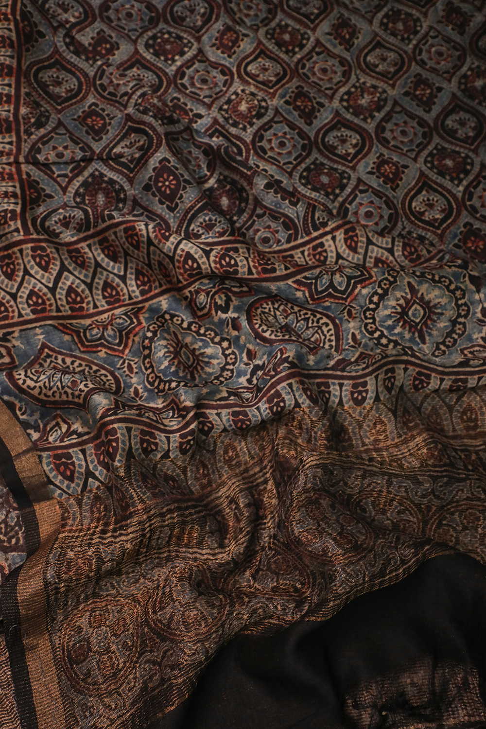 Charcoal Dusk Ajrak Silk Cotton Dupatta