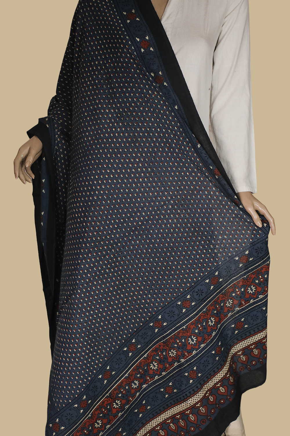 Indigo Micro Motifs Ajrak Cotton Dupatta