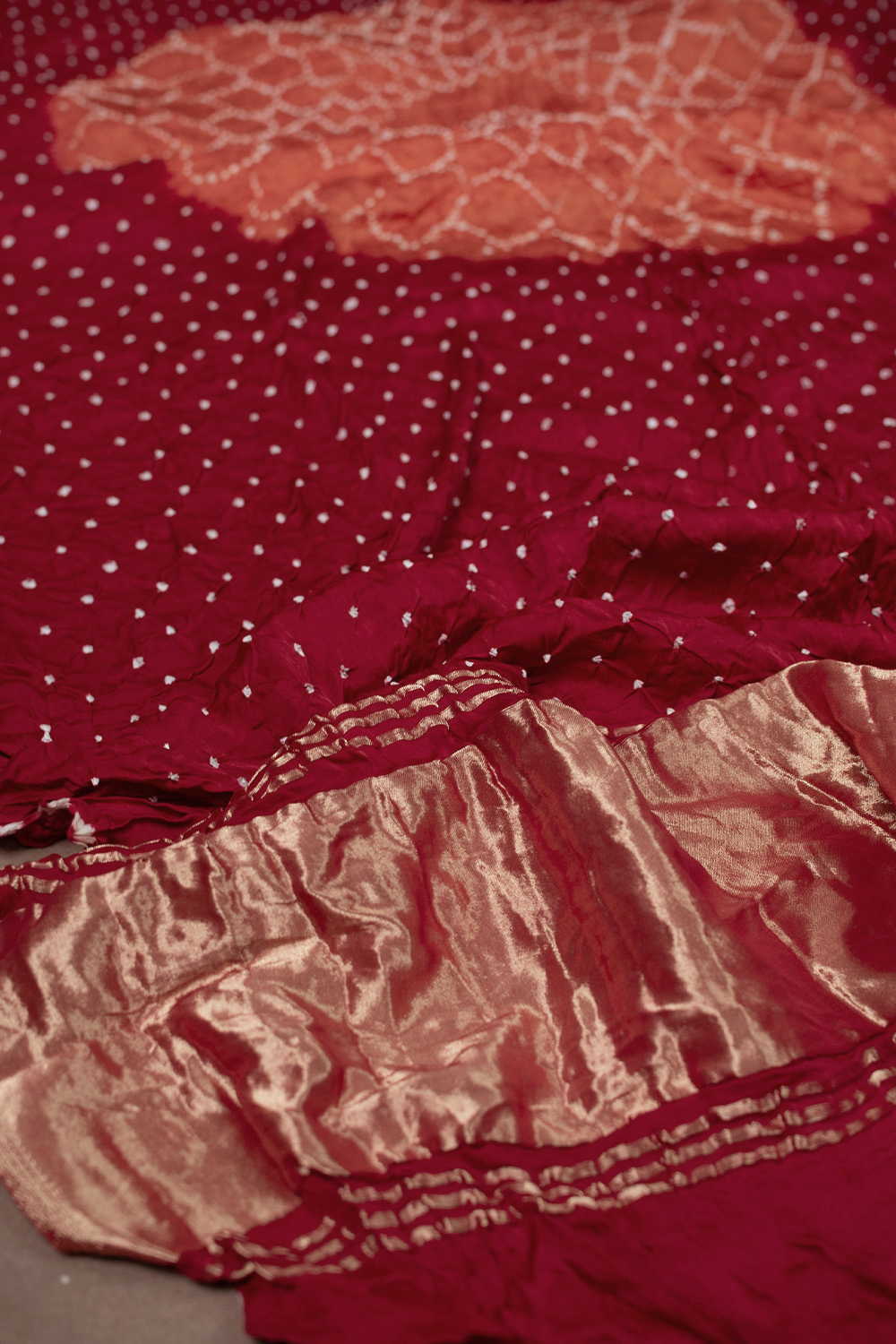Hand Knotted Modal Silk Bandhani Dupatta with intricate design and fine Tie & Die work. Soft and comfortable, it sure would feel good around your neck. Bright & stunning- a pretty companion to brighten any ensemble.