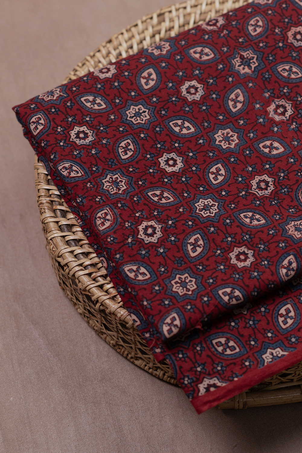 Maroon Ajrak Cotton Fabric