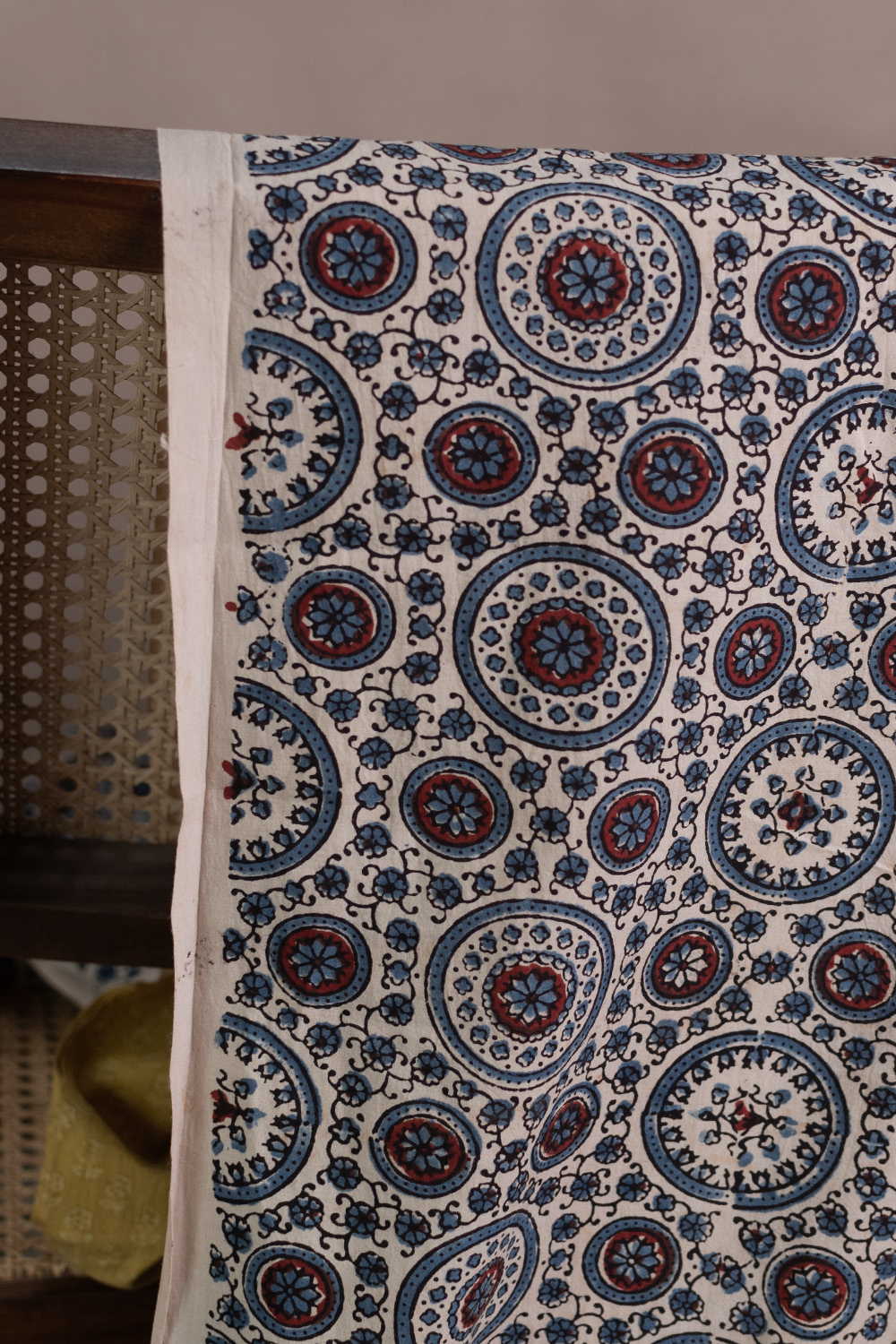 The Intricate block prints from Kutch with their Sindhi roots comes in definite geometric and floral patterns in natural shades. Ajrak is very distinct from the other styles of block printing and can be identified with the intricacy of prints and the natural tone. Soft cambric cotton fabric with Ajrak block prints - define your unique style. The Design is Parallel to the Length.