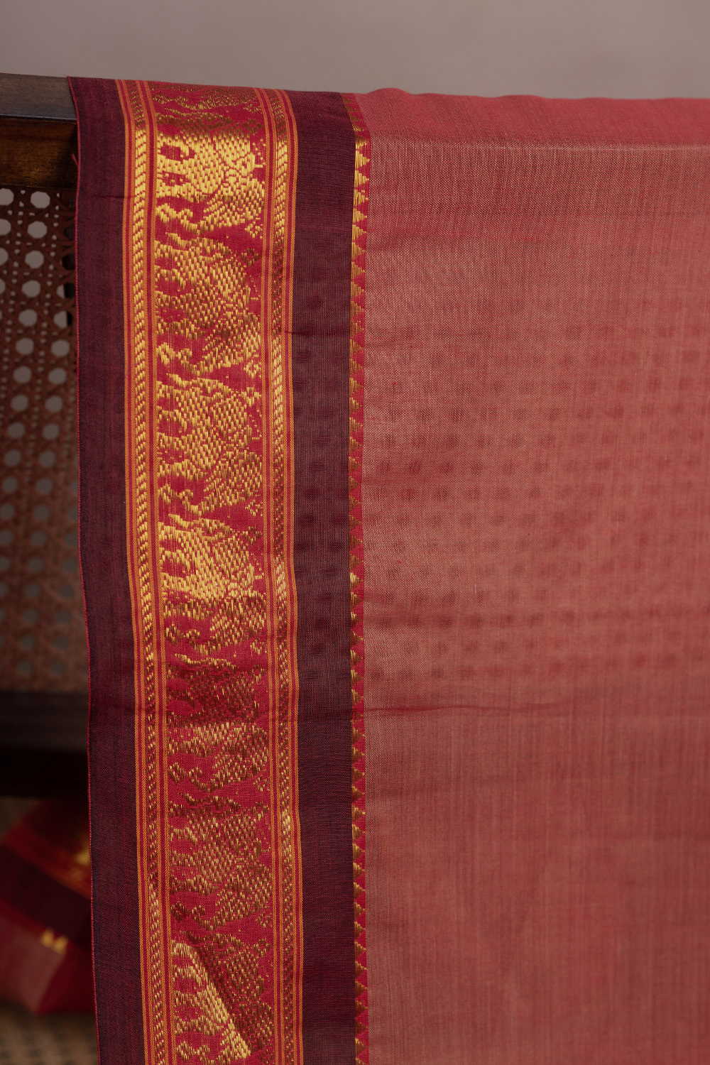 Dark Peach Narayanpet Border Cotton Fabric