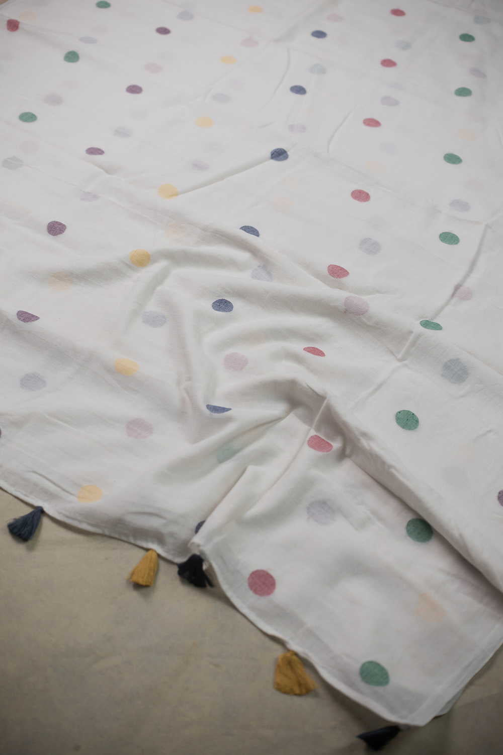 Colorful Buttas - Cream Jamdani Cotton Saree