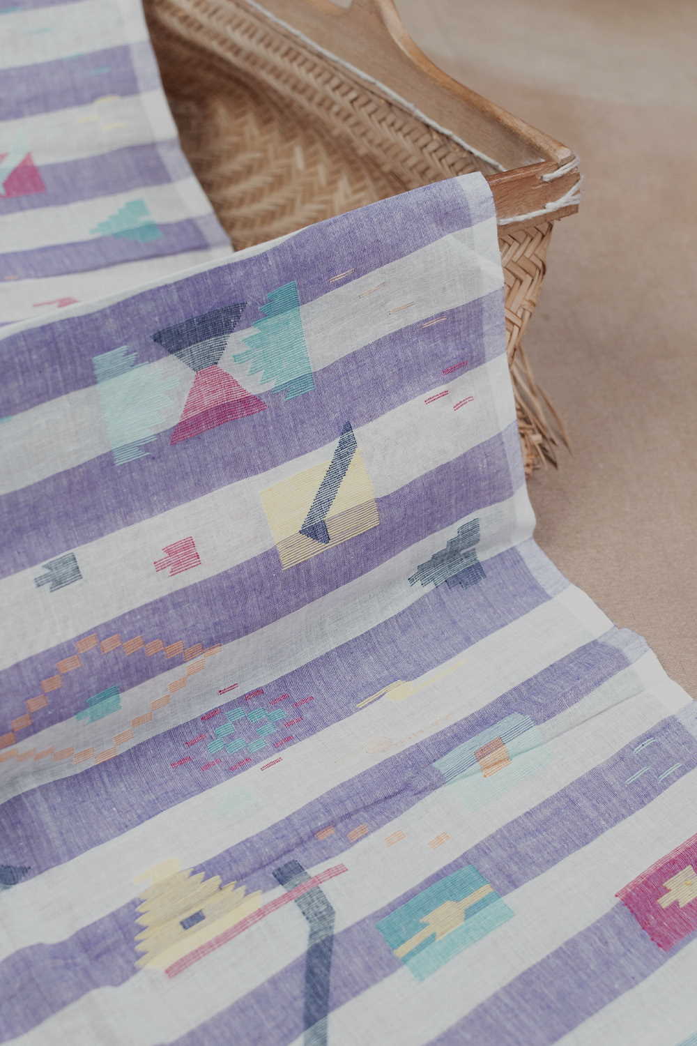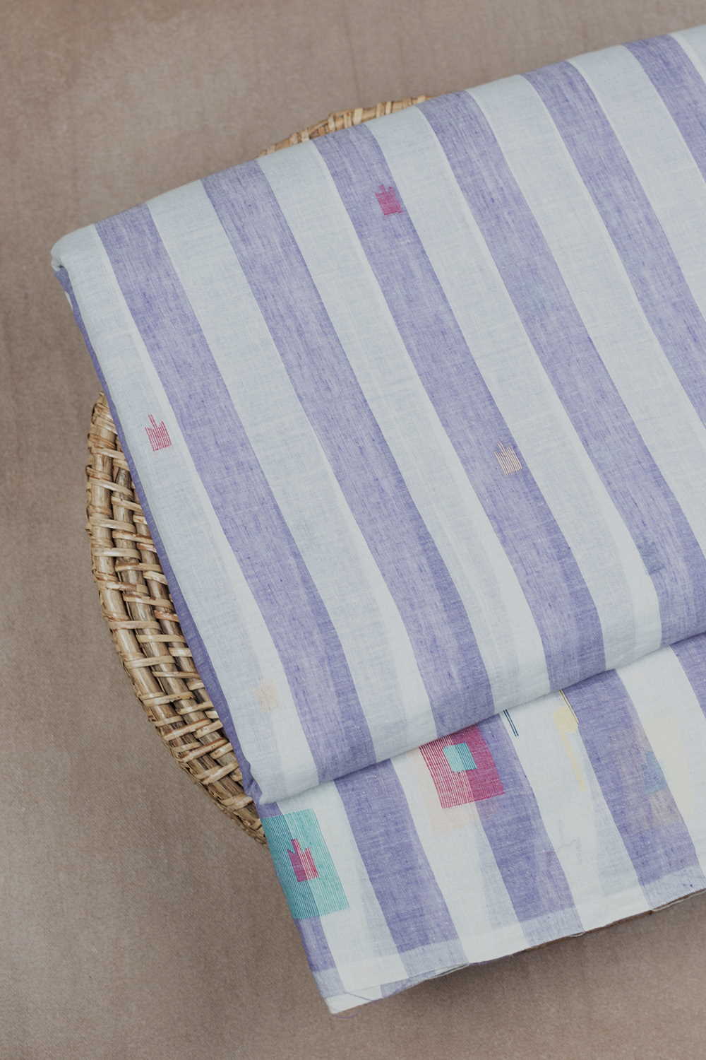 Purple with Cream Jamdani Cotton Fabric