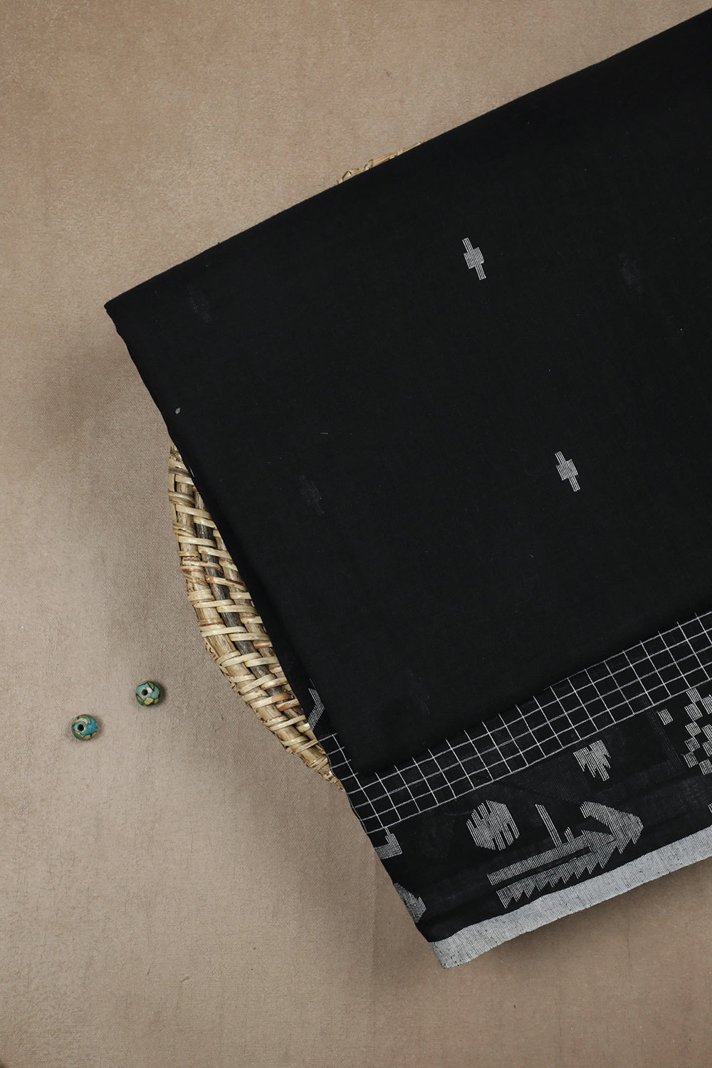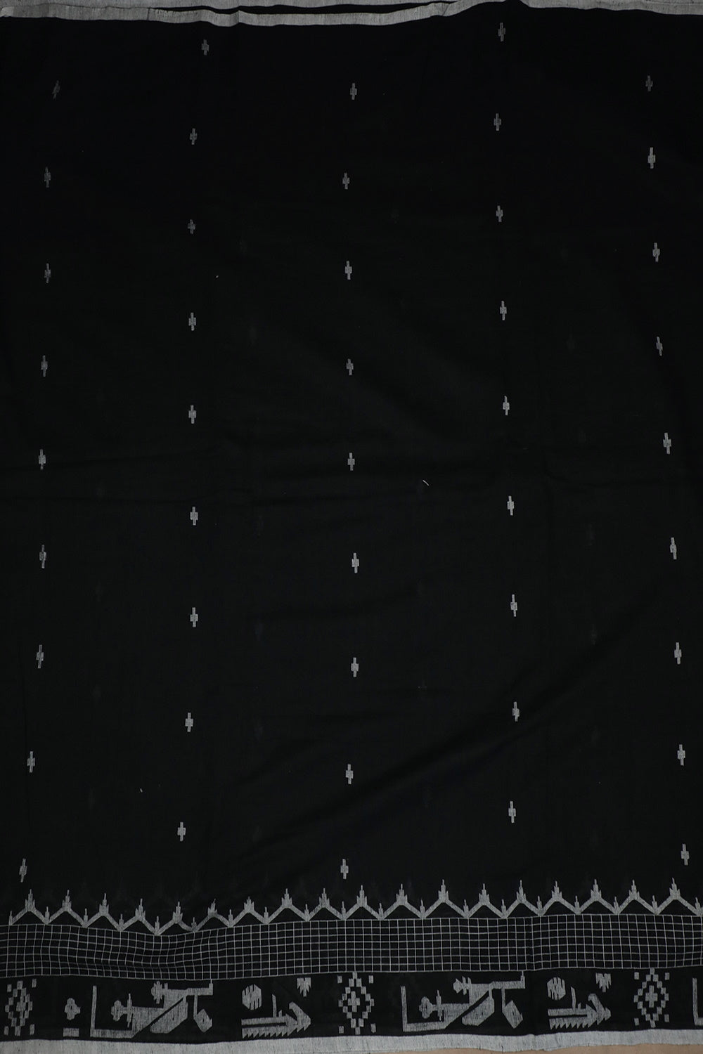 Cream Butta on Black Border Jamdani Cotton Fabric - 1.4m