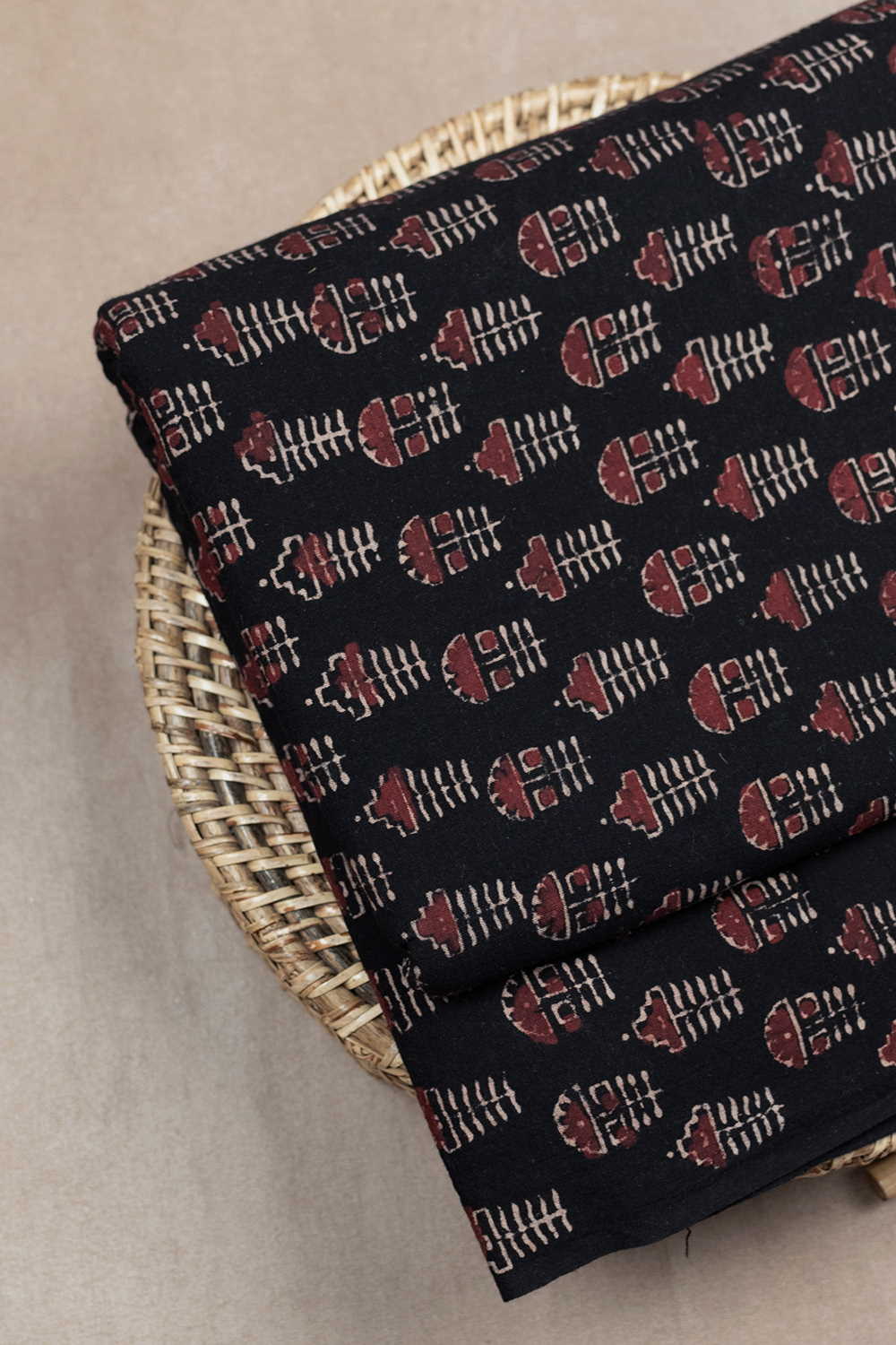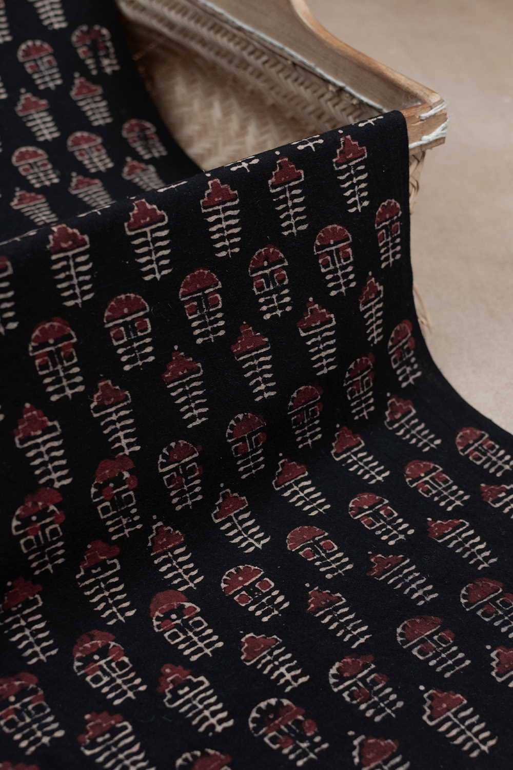 Black with Butta Floral Ajrak Cotton Fabric - 0.5m