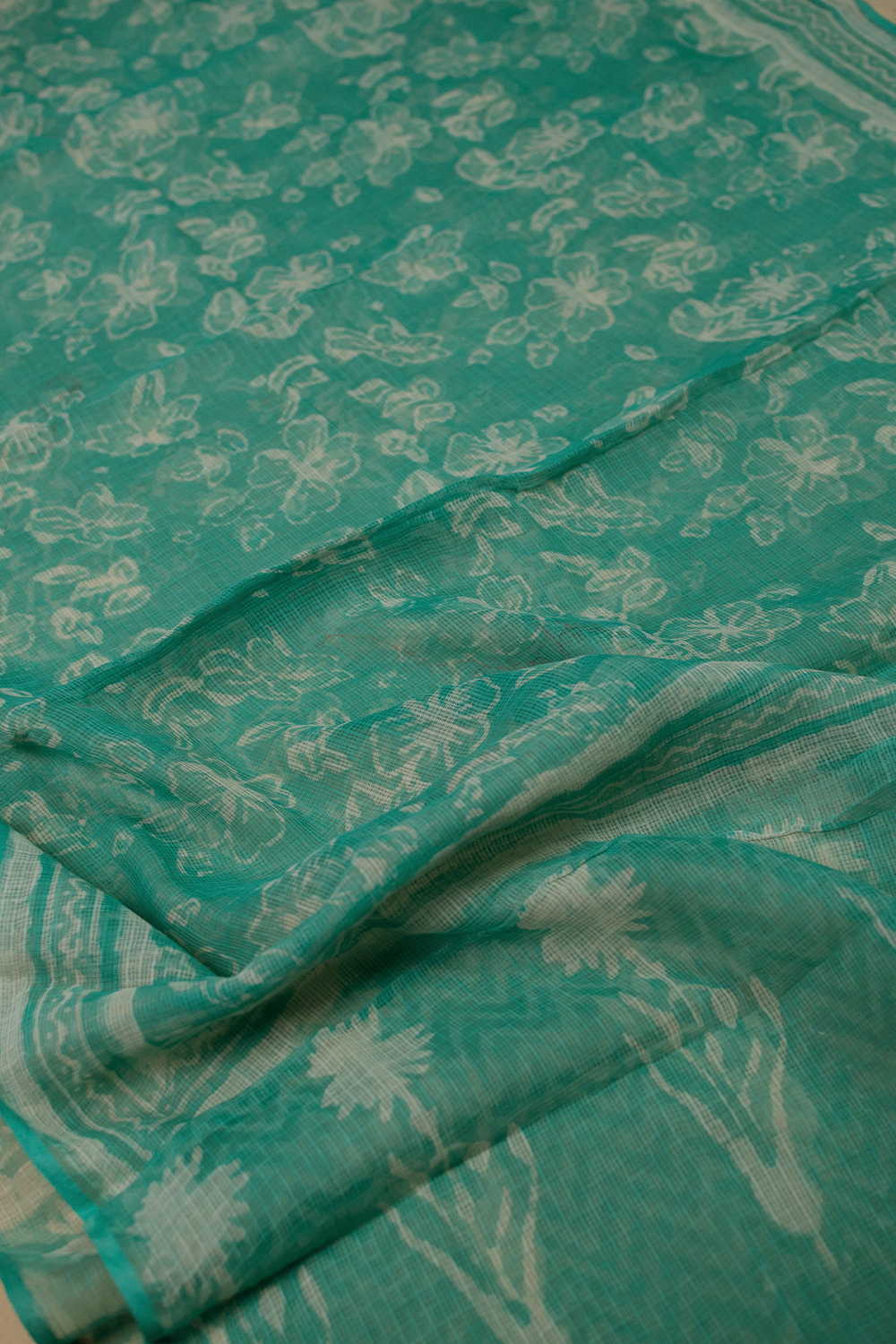 A typical Sanganeri printed cloth features a delightful interplay of colors, with white, yellow, green, or blue backgrounds complemented by delicate motifs. The motifs are diverse and encompass a wide array of elements, including flowers, plants, fruits, animals, human figures, and mesmerizing geometrical patterns.