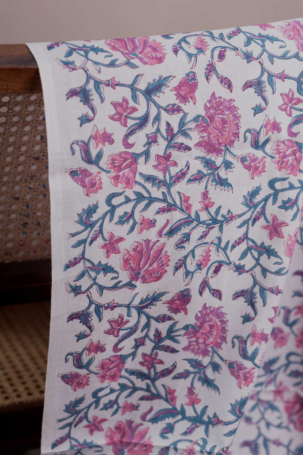Floral Sanganeri imprints on soft cambric cotton brings with it the elusive elegance to add charm to your presence. Ideal for blouses, kurtas, kids dresses, cotton pants and anything in your stretch of imagination. The base fabric is thin and soft cotton. The design is parallel to the Length.