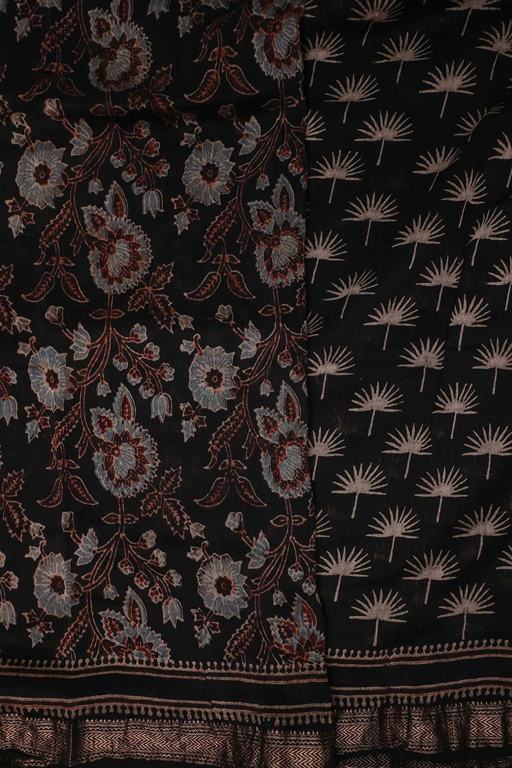 Black Ajrak Maheshwari Silk Cotton saree