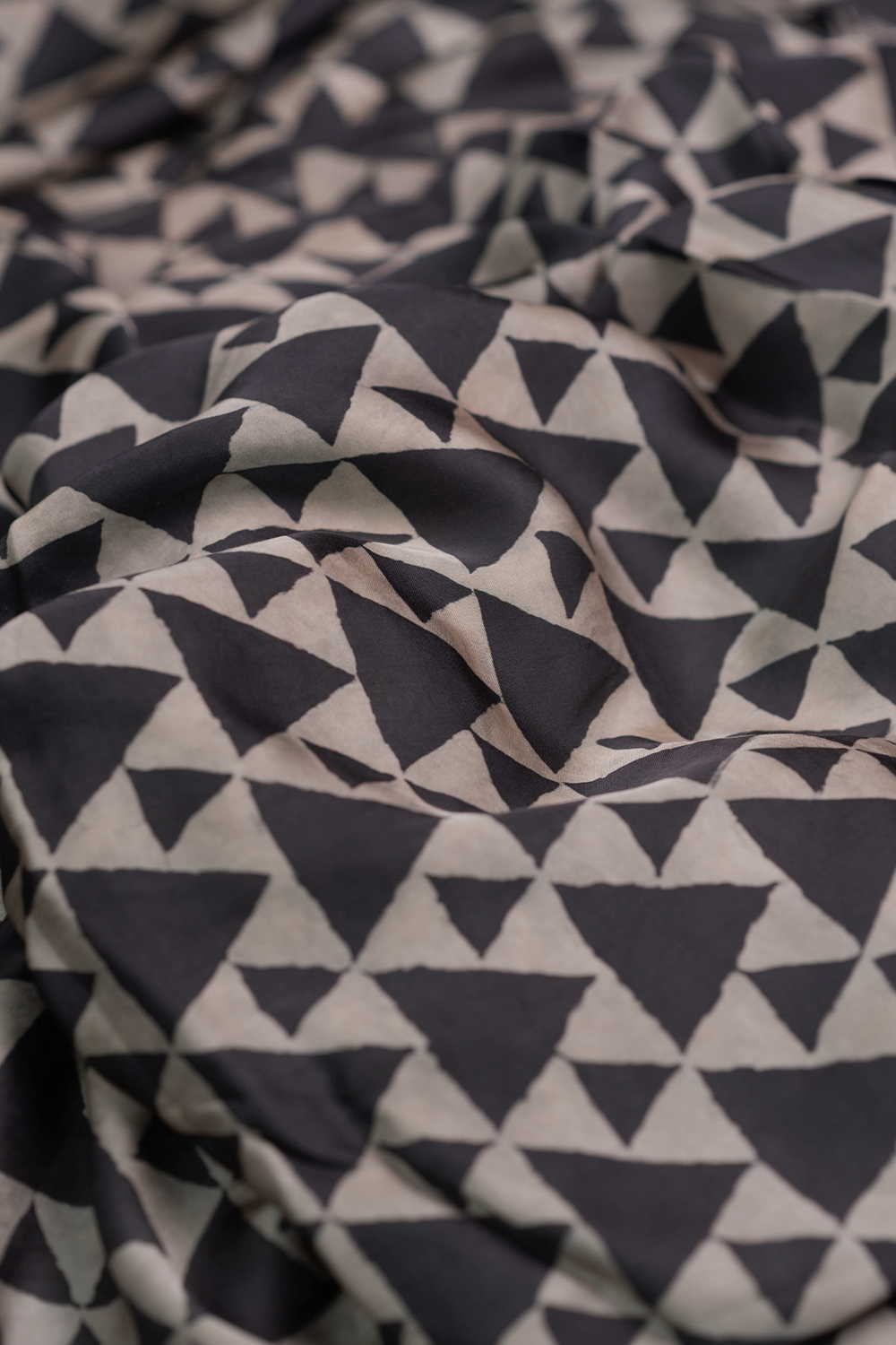 Pyramid on Grey Block Printed Modal Silk Fabric
