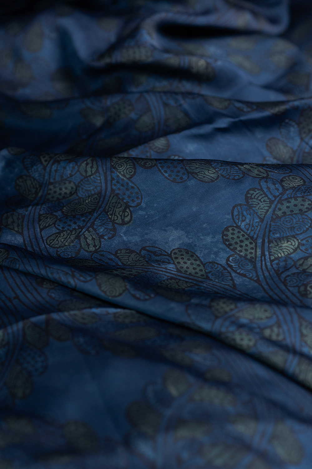 Soft Silky texture on the outside and comfortable cotton feel on the inside, thats what distinctly marks the modal silk. The Dreamy Block Prints on the modal silk makes it feel ethereal. The fabric would suit any silhouette. Buy online Silk fabrics this season to have a distinguished look. Design is parallel to Length.