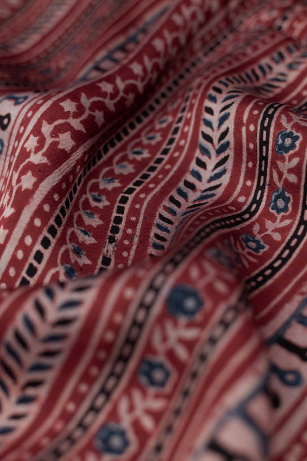 Maroon Patterned Ajrak Modal Silk Fabric